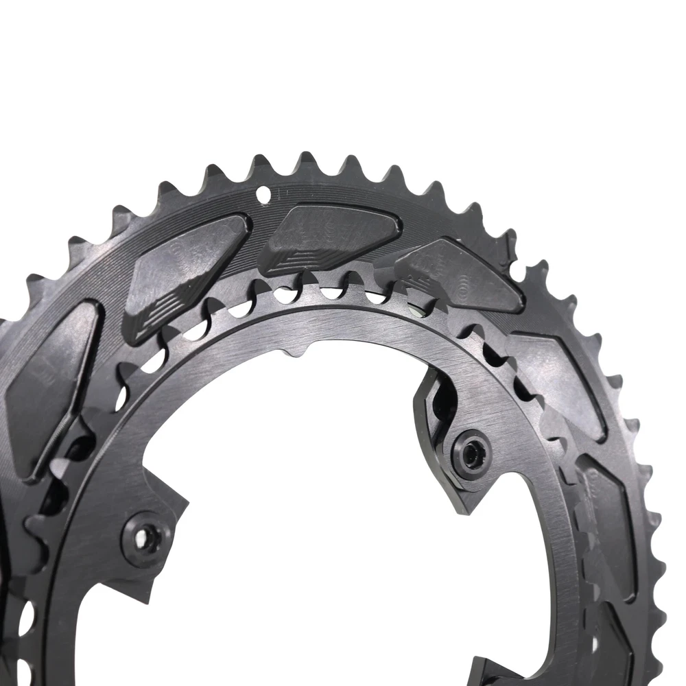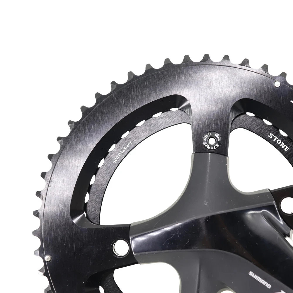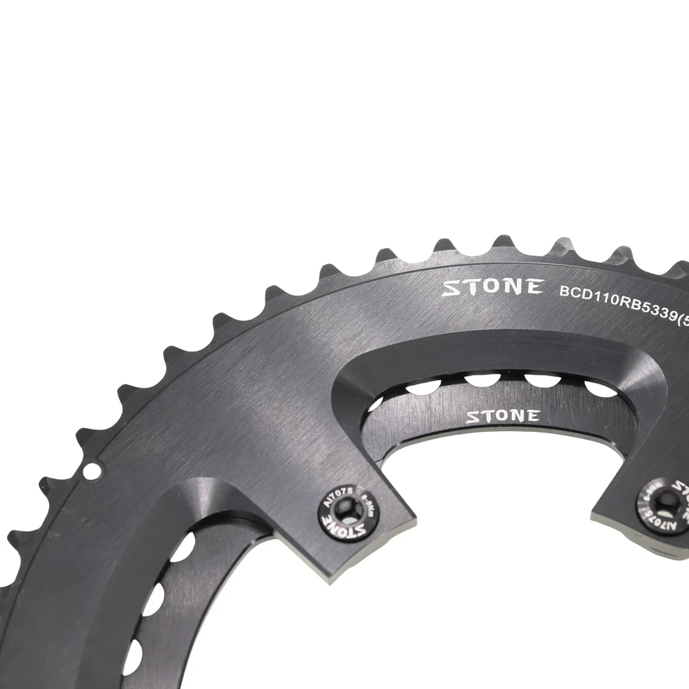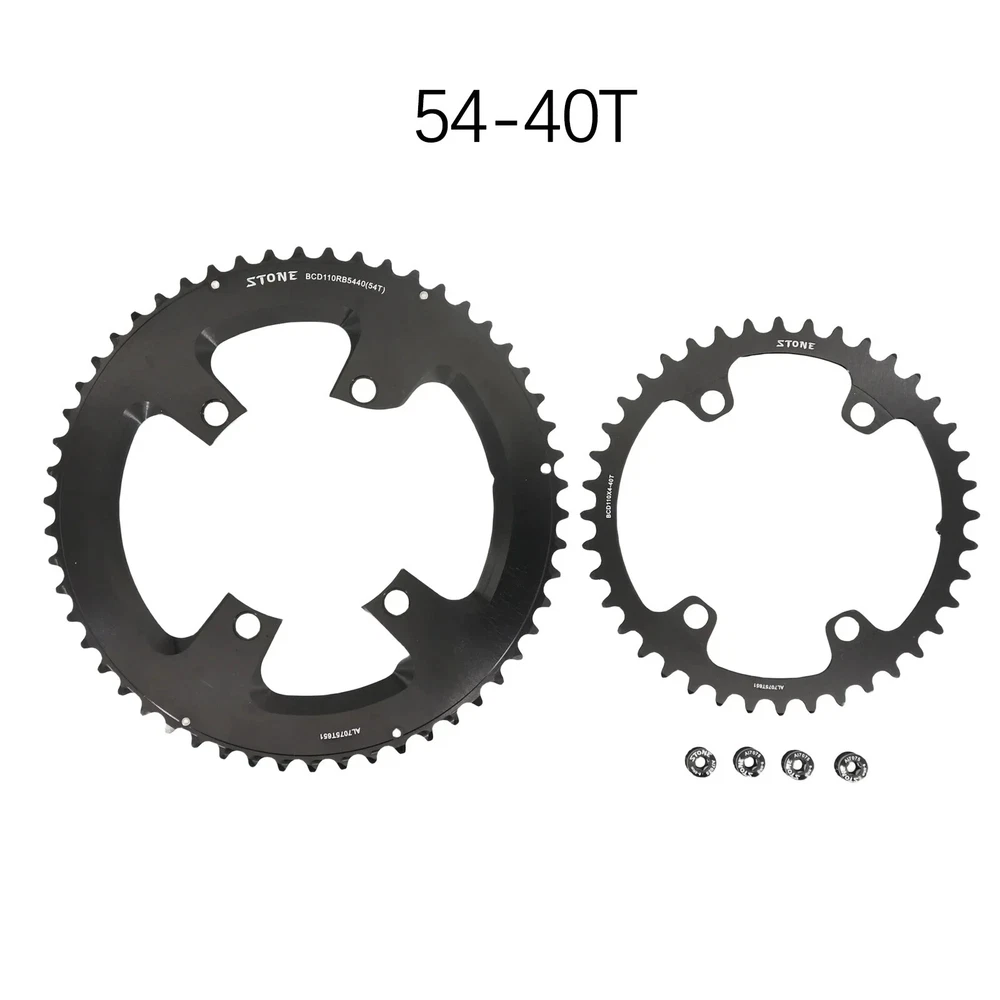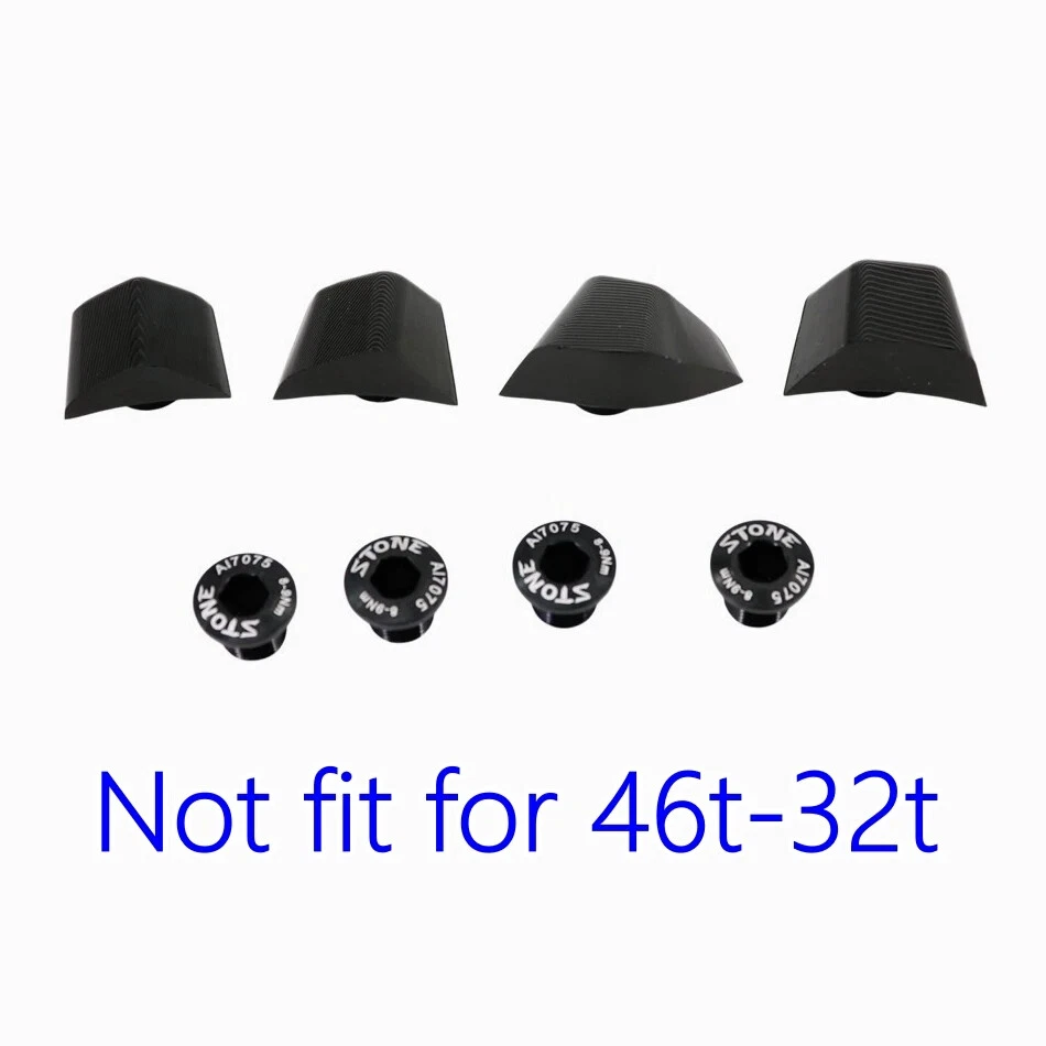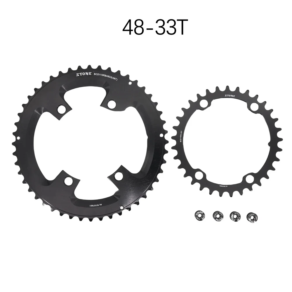 Color: black Size:110bcd Advantage: fast chain shifting Weight: 121g(46/32), 143g(48T/33T), 153g(50T/34T), 169g(52/36T), 185g(53/39T), 191g(54T/40T), Speed: 9-12s(Road bike), not support sram axs flattop 12s chain. Offset:0mm, but 46-32T is 2mm inner offset Notice:the decoration Bolts cap set only fit for stone 2X chainring use, not for other brand chainring. (46T/32T can not use decoration bolts cap, 46/32T can only use the ordinary bolts as the 32T chainring has buildin female bolts) Package content: 2pcs chainring and 4pcs oridnary bolts. Notice:the Bolts set only for stone 2X chainring use. not for other brand chainring(46t-32t can not use)