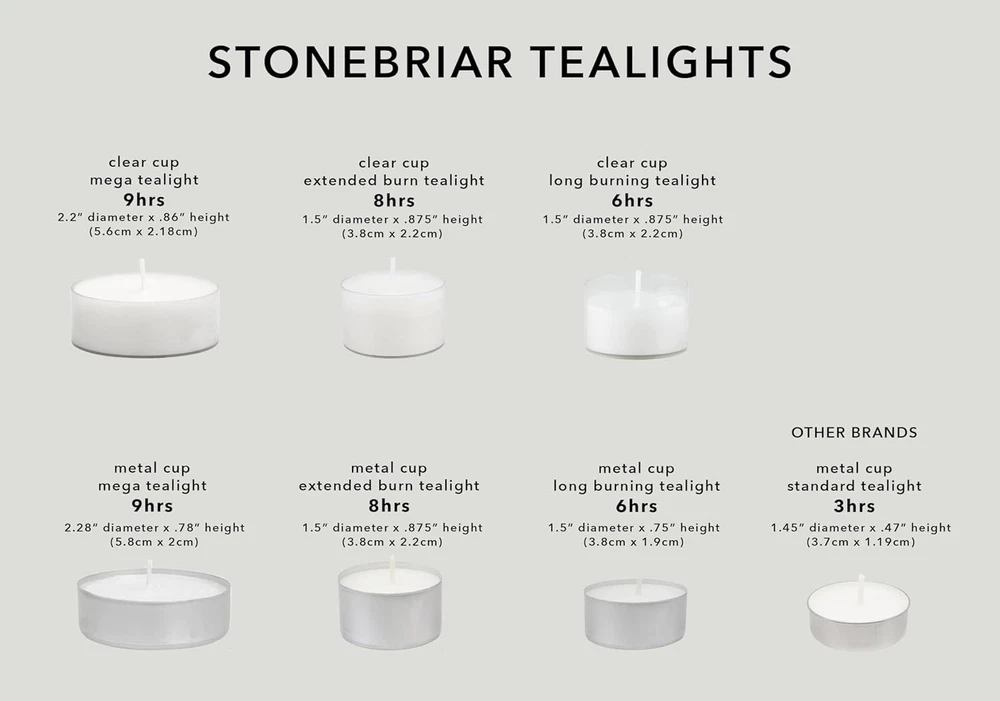 Stonebriar 96 Count White Unscented Smokeless Long Burning 96 Pack, Product Details Brand: Stonebriar Color: White Product Dimensions: 1.5"W x 0.88"H Number of Items: 96 Scent: Unscented Are Batteries Included: No Indoor/Outdoor Usage: Outdoor, Indoor Specific Uses For Product: Relaxation, Spa, Celebration, Decoration Shape: Round Material: Palm Wax Container Material: Plastic Occasion: Engagement, Christmas, Wedding, Birthday, Halloween, Thanksgiving Seasons: All Season Special Feature: Long Burning, Smokeless, Clean Burn, Odorless Style: Traditional Wick Quantity: 1 Model Name: 6-7 Hour Long Burning Unscented Theme: Holiday Pattern: Candles Package Information: Plastic Material Type Free: Lead Free Unit Count: 96.0 Count Embellishment: Dried Flower Material Feature: Fragrance Free Candle Type: Tea Light Candle Item Diameter: 1.5 Inches Size: 96 Pack Target Audience: unisex, all ages Manufacturer: CKK Home Decor Packaging Type: Protective Storage Box Item Weight: 4.09 pounds Country of Origin: Estonia Item model number: DTLR-96-6 Is Discontinued By Manufacturer: No Assembly required: No Number of pieces: 96 Batteries required: No Included Components: tea light (96) 96 unscented long burning clear cup tea light candles come neatly and tightly shrink-wrapped and packaged in a protective storage box Our candles are made with a lead free 100% cotton wick for a safe, clean, and smokeless burn Stonebriar’s long lasting tea light candles are hand poured with quality sustainable palm wax in Europe for an extended 6-7 hour burn time Tea lights each measure 7/8” x 1.5” and are the perfect size for a beautiful floating centerpiece, potpourri burners, luminaries, and more Stonebriar tea light candles are perfect for romantic moments, restaurants, birthday party decorations, or creating a relaxing spa atmosphere Stonebriar bulk 96 pack unscented smokeless long burning clear cup tea light candles with 6 to 7 hour extended burn time are hand poured with quality sustainable palm wax. Our wicks are lead free and 100% cotton, and each candle comes in its own clear plastic cup. Stonebriar tealight candles each measure 1.5 inches in diameter by 7/8 inches in height and will fit any standard tea light or votive holder. These quality tealights can be used with any decor whether it be a beautiful centerpiece for the holidays, an upscale romantic restaurant setting, or a relaxing spa atmosphere. Tea light candles can also be used for decorations at weddings, birthdays, anniversaries, and much more. Buy your Stonebriar 96 pack unscented clear cup tea light candles today and instantly brighten up your home decor.