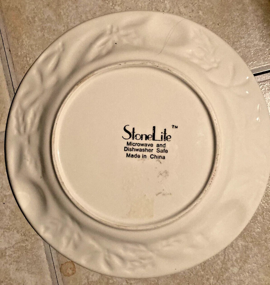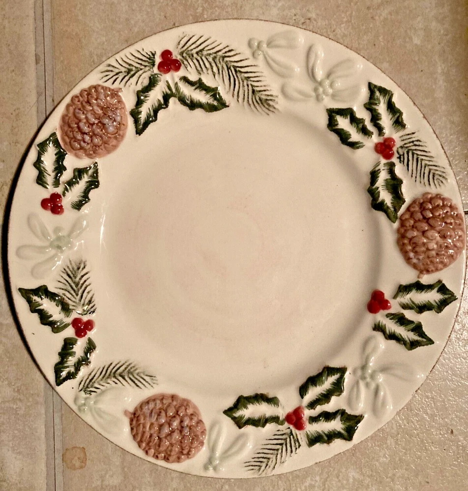 Stonelite Holly Pinecone Ceramic Serving Platter CHRISTMAS, 10.5" round.