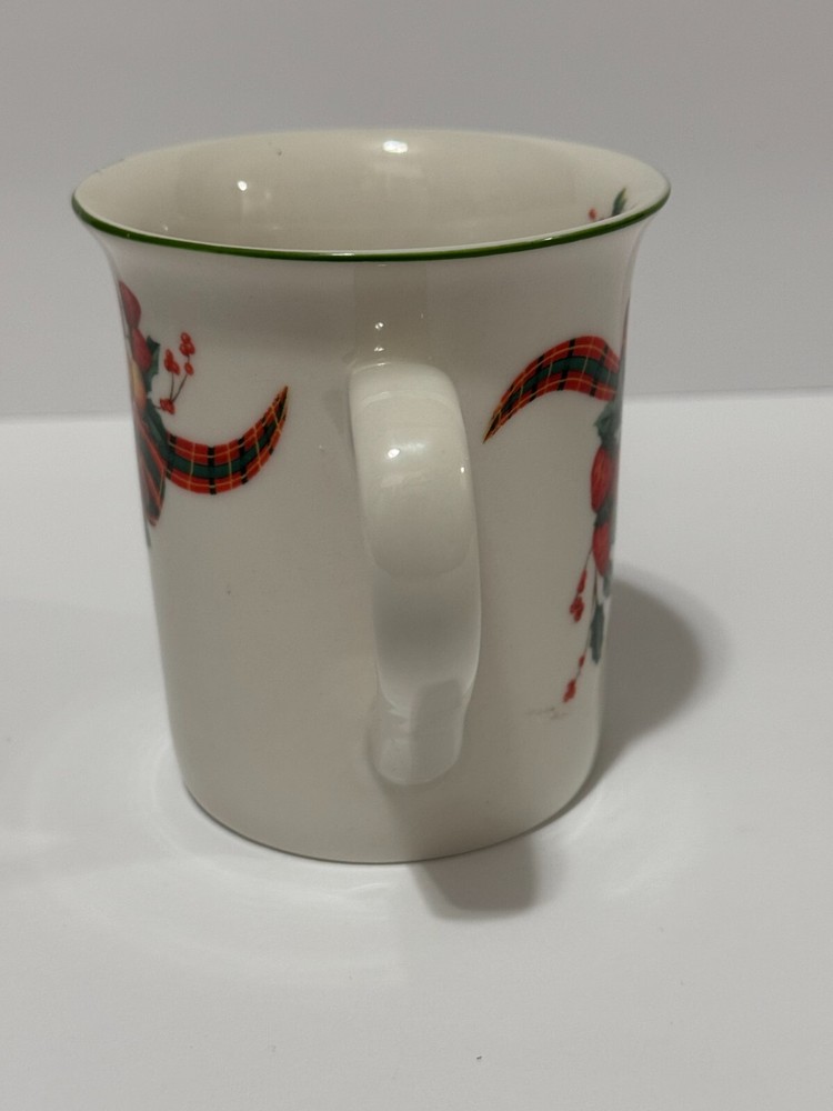 Enjoy your coffee in style with this beautiful William James Stoneware Holiday Coffee Mug. The mug features a festive design of fruit and berries with a tartan ribbon, making it perfect for any occasion. The round shape and medium size of the mug make it easy to hold and use, while the handle adds an extra touch of convenience. Made of high-quality stoneware, this coffee mug is durable and perfect for daily use. The mug has a capacity that is unknown, but it is perfect for hot or cold beverages. This vintage mug was manufactured in China in the 1990s and is an original piece from the William James franchise.