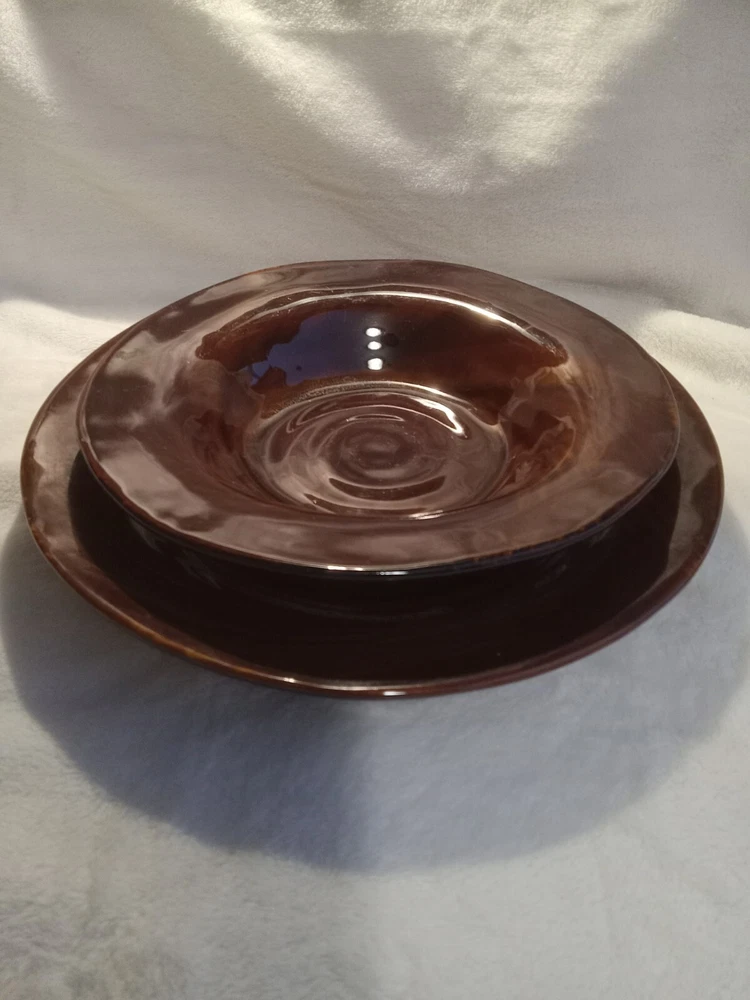 Stoneware Tortose Shell Plate & Salad Bowl
