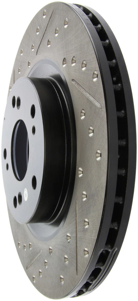 StopTech Drilled and Slotted Sport Rotors are 1-piece direct replacement brake discs for factory brake systems and stock calipers that look great behind your wheels a** and offer significantly improved braking performance. The unique cross-drilling and slotting aids with heat and brake dust dispersal; prevents glazing of the pads; adds bite and improves wet and dry braking performance. Built to last; the black e-coating provides protection from corrosion and the high carbon metallurgy (in most applications) offers quieter operation; better crack resistance and increased performance. Premium e-coated rotor with advanced metallurgy that greatly reduces pad squeal. Especially effective with higher friction; European style brake pad compounds. Drilled & Slotted for increased bite; improved looks and better performance Premium e-coated rotor with advanced metallurgy that greatly reduces pad squeal; Especially effective with higher friction; European style brake pad compounds; Added Molybdenum and Chromium to resist rotor cracking 2007 - 2011 Acura CSX, 2013 - 2015 Acura ILX, 2002 - 2006 Acura RSX, 2006 - 2015 Honda Civic, 2005 - 2006 Honda CR-V Fitment: Acura ILX Base 2013 Acura ILX Base 2014 Acura ILX Base 2015 Acura RSX Type-S 2002 Acura RSX Type-S 2003 Acura RSX Type-S 2004 Acura RSX Type-S 2005 Acura RSX Type-S 2006 Honda Civic EX 2012 Honda Civic MUGEN Si 2008 Honda Civic Si 2006 Honda Civic Si 2007 Honda Civic Si 2008 Honda Civic Si 2009 Honda Civic Si 2010 Honda Civic Si 2011 Honda Civic Si 2012 Honda Civic Si 2013 Honda Civic Si 2014 Honda Civic Si 2015 Honda CR-V EX 2005 Honda CR-V EX 2006 Honda CR-V LX 2005 Honda CR-V LX 2006 Honda CR-V SE 2005 Honda CR-V SE 2006