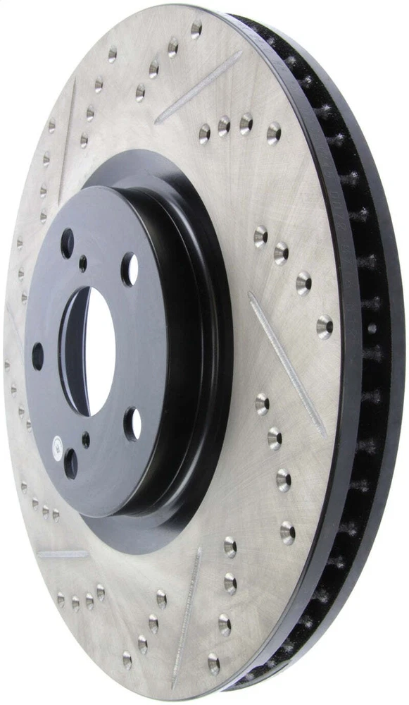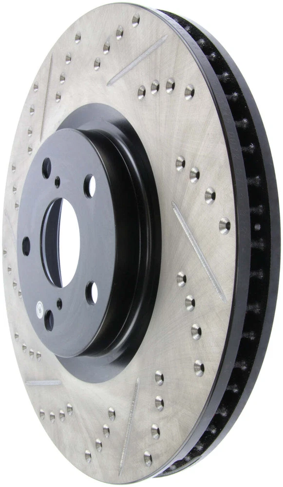 StopTech Drilled and Slotted Sport Rotors are 1-piece direct replacement brake discs for factory brake systems and stock calipers that look great behind your wheels a** and offer significantly improved braking performance. The unique cross-drilling and slotting aids with heat and brake dust dispersal; prevents glazing of the pads; adds bite and improves wet and dry braking performance. Built to last; the black e-coating provides protection from corrosion and the high carbon metallurgy (in most applications) offers quieter operation; better crack resistance and increased performance. Premium e-coated rotor with advanced metallurgy that greatly reduces pad squeal. Especially effective with higher friction; European style brake pad compounds. Drilled & Slotted for increased bite; improved looks and better performance Premium e-coated rotor with advanced metallurgy that greatly reduces pad squeal; Especially effective with higher friction; European style brake pad compounds; Added Molybdenum and Chromium to resist rotor cracking 1993 - 1998 Toyota Supra Fitment: Toyota Supra Twin Turbo 1993 Toyota Supra Twin Turbo 1994 Toyota Supra Twin Turbo 1995 Toyota Supra Twin Turbo 1996 Toyota Supra Twin Turbo 1997 Toyota Supra Twin Turbo 1998