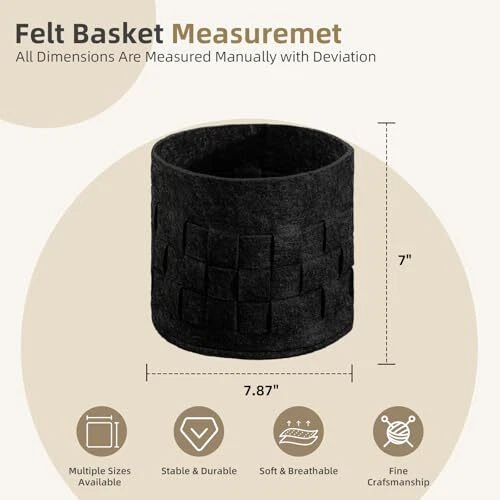 Menu 1. We require immediate payment. 2. We currently accept payment via eBay managed payments only. 3. Once payment is cleared, we will dispatch your shipment within 1-3 business days. Please refer to the "Shipping" tab for more information regarding shipping speed to your destination. Storage Baskets for Shelves 3 Pack, Small 7.9" x7.9" x7 " Round Felt Fabric Storage Bins with Leather Handle, Mini Woven Storage Basket for Clothes,Books,Dog Toys and Nursery-Dark Gray Product description Three Pack Compact Yet Spacious Closet Storage Bins: Our round fabric baskets (7.9"x7.9"x7") are perfect for organizing underwear, socks, diapers, towels, pet toys, and office supplies. Easily fit them in drawers or shelves for a tidy home! Soft Felt Material for Furniture Protection:Crafted from unique felt fabric, our Storage Baskets for Shelves is soft, safe, and provides excellent protection for your furniture against wear and tear. It also ensures safety for your children or pets, preventing injuries from accidental bumps. A must-have for every household. The thickened felt material, twice the thickness of similar products, ensures quicker shape recovery and a more upright appearance, extending its lifespan Perfect for Every Occasion:Whether it's a housewarming party, Valentine's Day celebration, welcoming a new colleague at work, or any other special occasion, our small storage basket makes a thoughtful and practical gift choice. Its compact design and versatile functionality ensure it's appreciated by anyone looking to add a touch of organization and style to their space. Give the gift of tidiness and convenience with our storage basket! Beautiful Home Decor ?????:Handwoven with care, our basket for storage boasts a unique design that adds a touch of elegance to your home decor. Available in various colors and sizes, it caters to diverse storage needs while maintaining a unified visual style throughout your home. It can even serve as a planter bag or grow bag. A versatile storage basket that you won't regret having Maximize Your Storage Space:Placing our storage basket in your wardrobe or cabinet maximizes your storage potential, effectively organizing your clutter and ensuring your room stays tidy and orderly PLEASE MESSAGE US IF YOU HAVE ANY OTHER QUESTIONS, AND MANY THANKS FOR READING ALL OF THIS. Copyright ©#. All Rights Reserved.