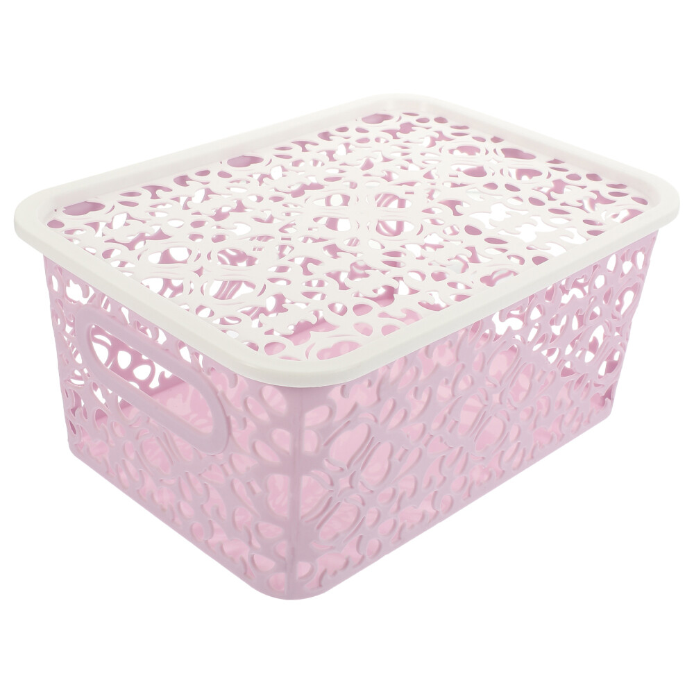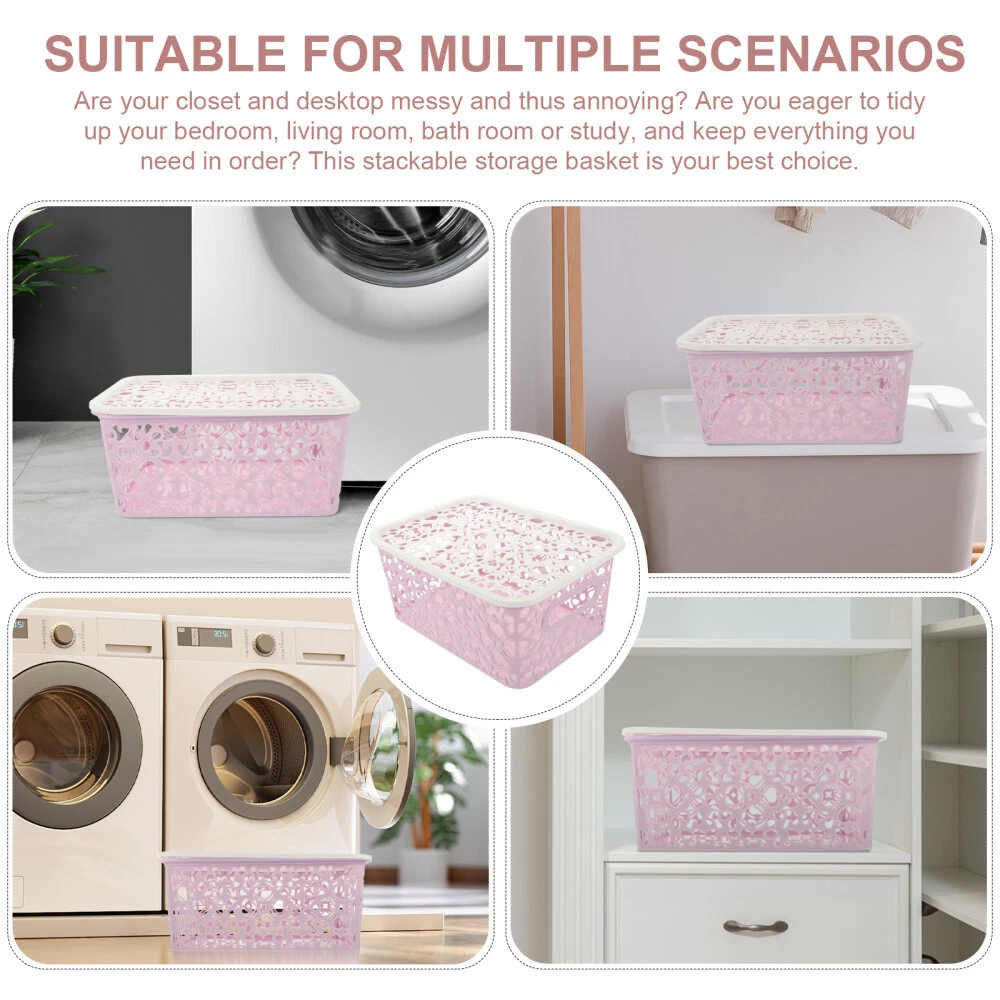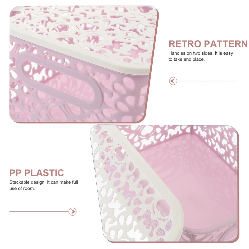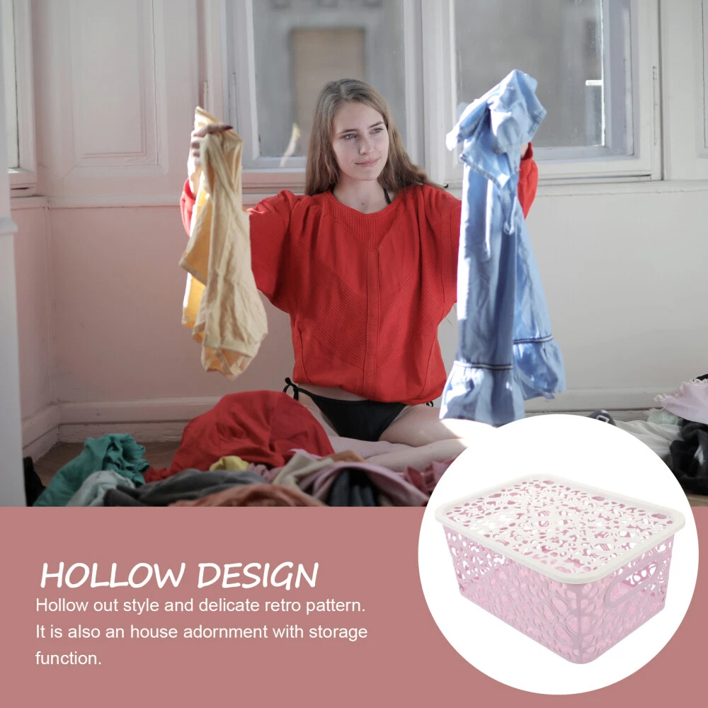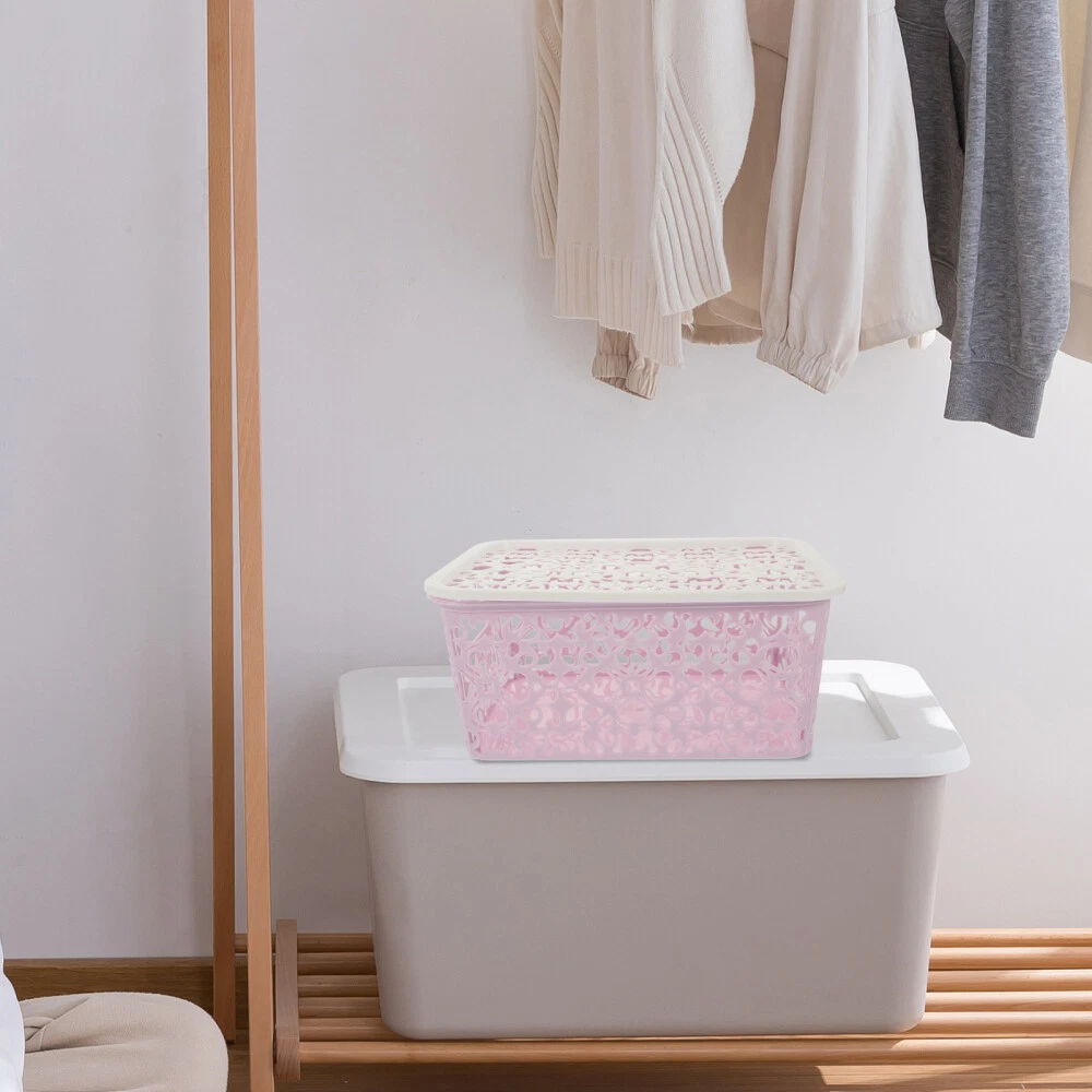 Storage Box Plastic Storage Basket Lid Container Desktop Drawer Organizer Bins