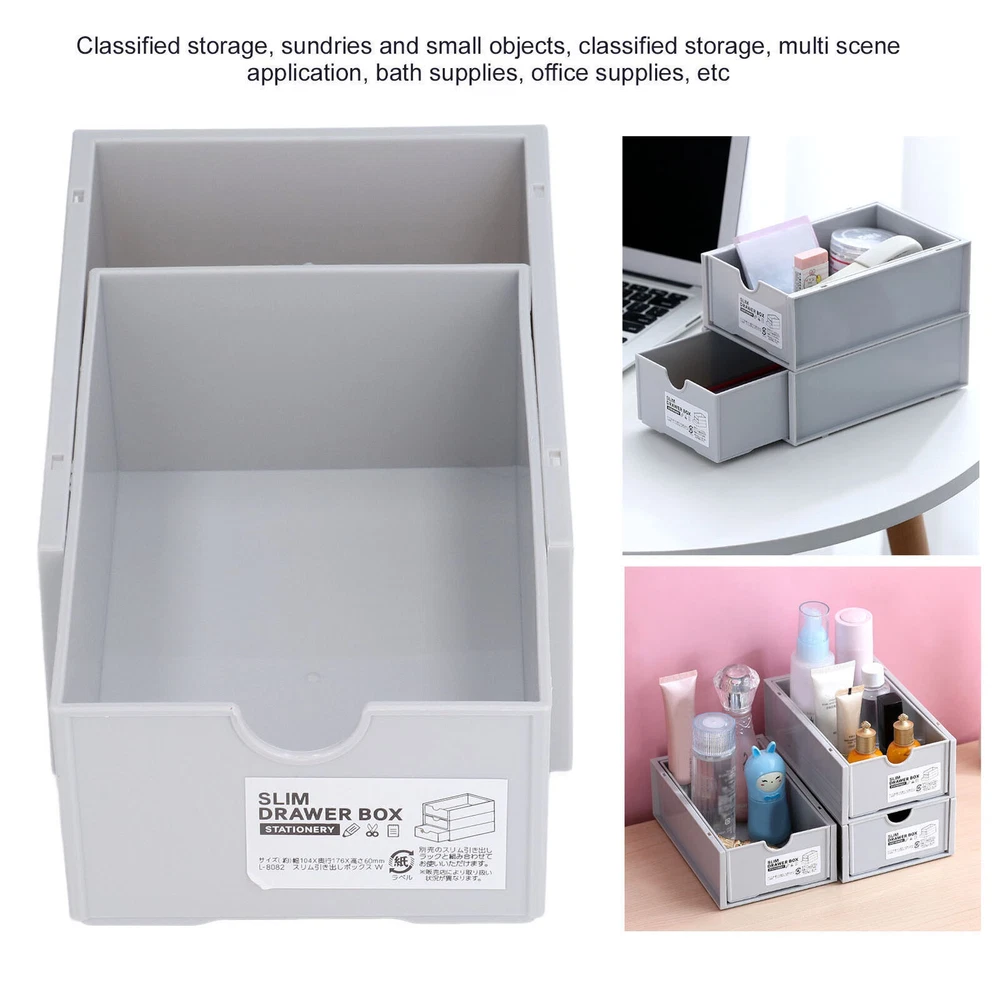 Feature: 1. Strong and Durable: Round , strong and durable, made of high‑quality materials, without burrs and without hurting hands 2. Place Items: Stacking combination, second variable finishing rack, stacking height, combined use, more items can be placed 3. PP Material: High quality PP material, PP material is strong and durable, handle design, easy to pull, storage box design handle, easy to pull 4. Large Capacity Storage: Large capacity storage, which can store common desktop small objects and save desktop space 5. Classified Storage: Classified storage, sundries and small objects, classified storage, multi scene application, bath supplies, office supplies, etc Specification: Item Type: Storage Box Material: PP Size: Approx. 18.3 x 11.2 x 6.3cm / 7.2 x 4.4 x 2.5in Package List: 1 x Storage Box Shell 1 x Storage Box Drawer Note: Please allow 0 to 2 cm error due to manual measurement. Thanks for your understanding.