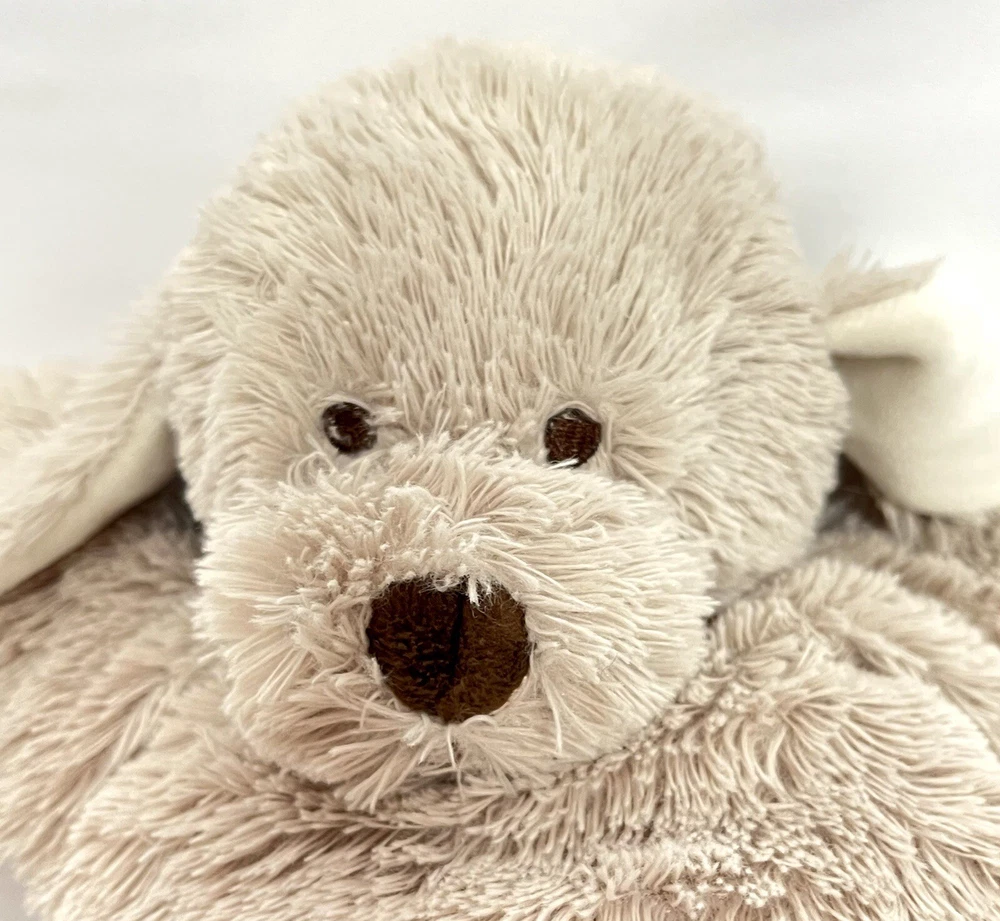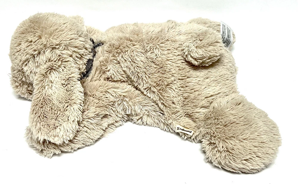 This Storki brand plush baby lovey toy is perfect for any occasion, especially for those who love dogs. Its soft beige color and embroidered eyes make it an adorable addition to any collection. The toy measures between 12 inches long, making it a great size for cuddling or displaying. The Storki Dog Plush is a 2018 release and has beanie paws and floppy ears. Add this cute and cuddly toy to your baby's collection today! CONDITION Pre-owned Good condition See pictures for details Please contact us with any questions or concerns. Thanks!