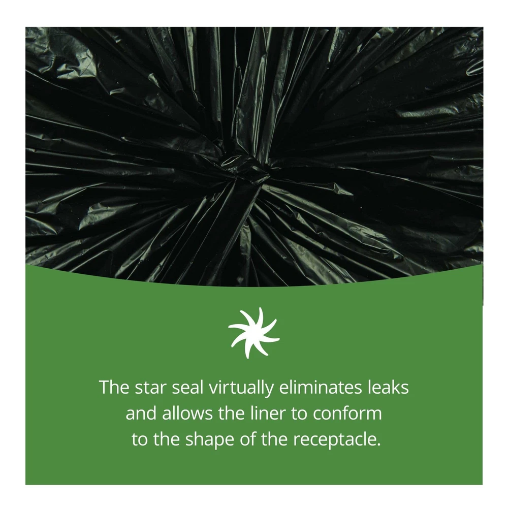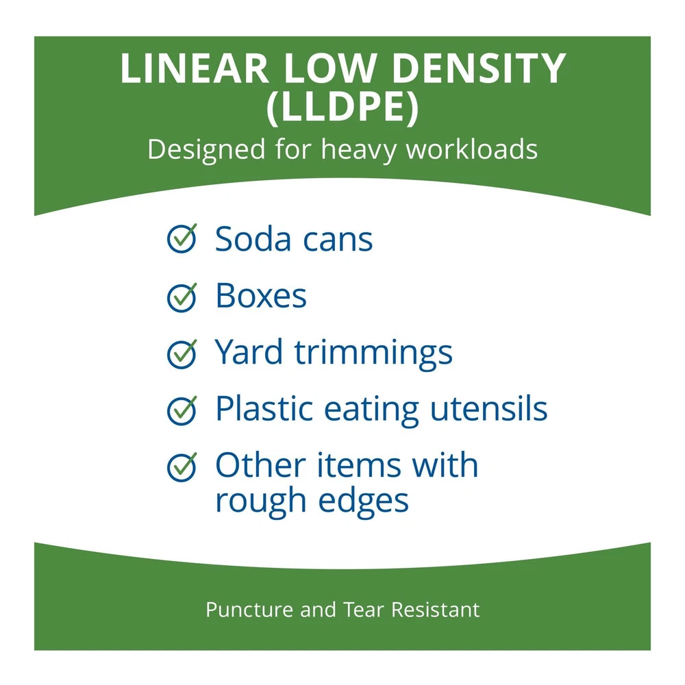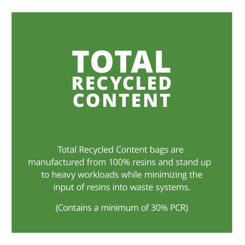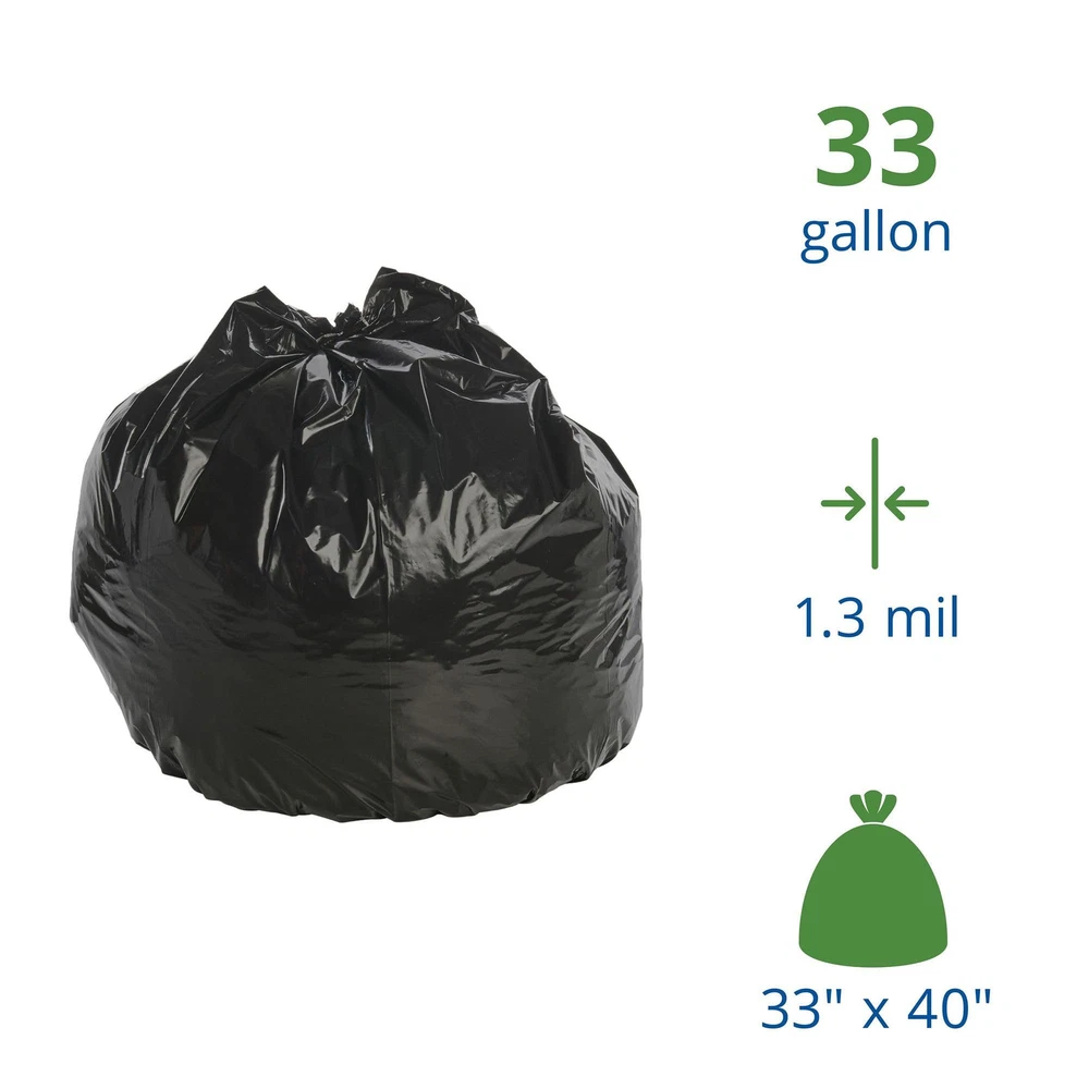 Trash bags are manufactured from recycled resins for an environmentally friendly way to dispose of your trash. Durable design stands up to the heavy workloads while minimizing the input of resins into your waste system. Bags are perfect for home, office and industrial use. Extra heavy-duty construction: 20 to 30-gallon capacity for various waste needs 1.3mm gauge material: Withstands up to 55 lb. of weight Versatile use: Suitable for home, office, and industrial settings Product dimensions: 11.25 x 17.25 x 6 inches (L x W x H)