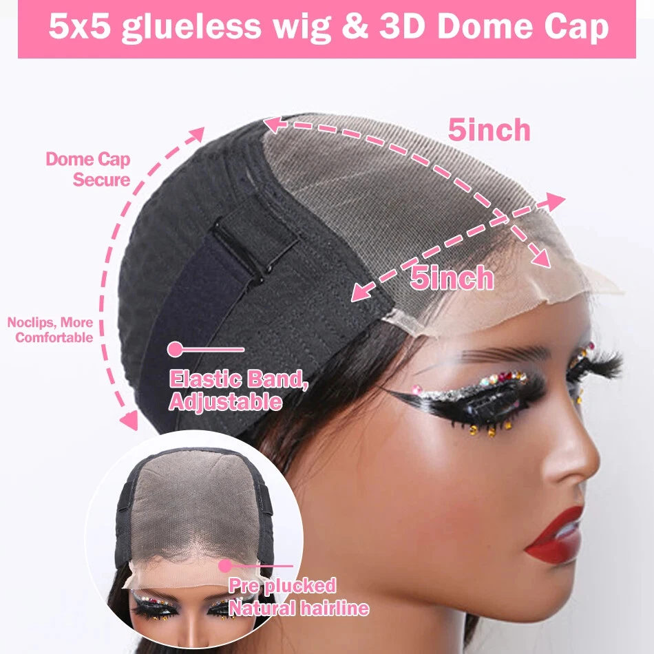 $ 129.275x5 Glueless Lace Front Bob Wig Preplucked Human Hair Short Straight