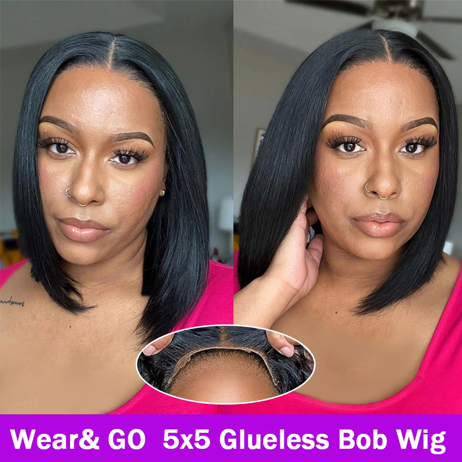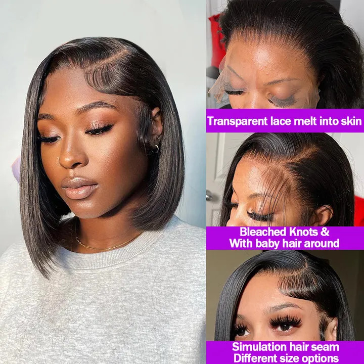 Straight Short Bob 5x5 Glueless Human Hair Wig with 13x4 Lace Front Pre Plucked
