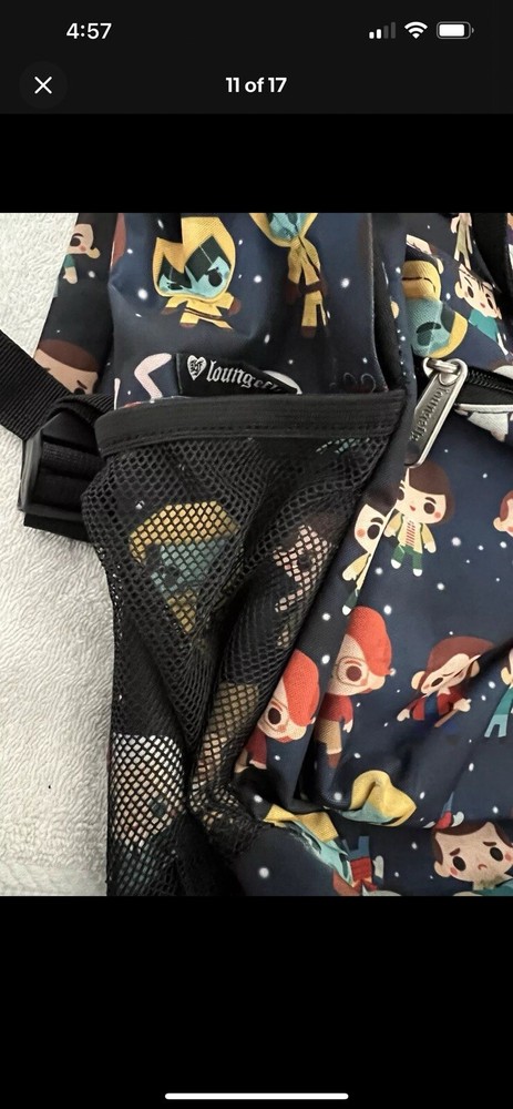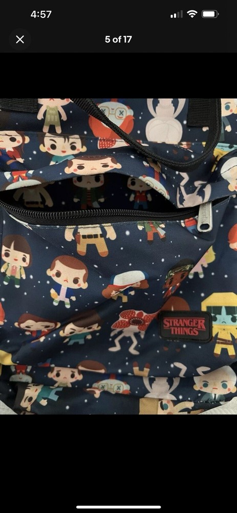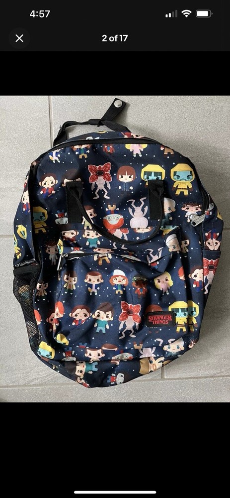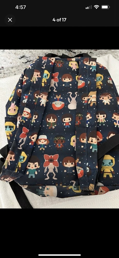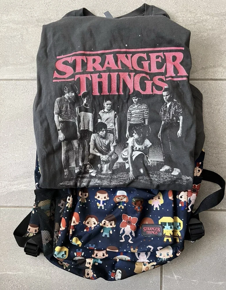 loungefly backpack & LG Tee LOT OF 2 STRANGER THINGS Large 17 In Long 13 In Wide Backpack has slight smudging on the bottom of the backpack. See pics