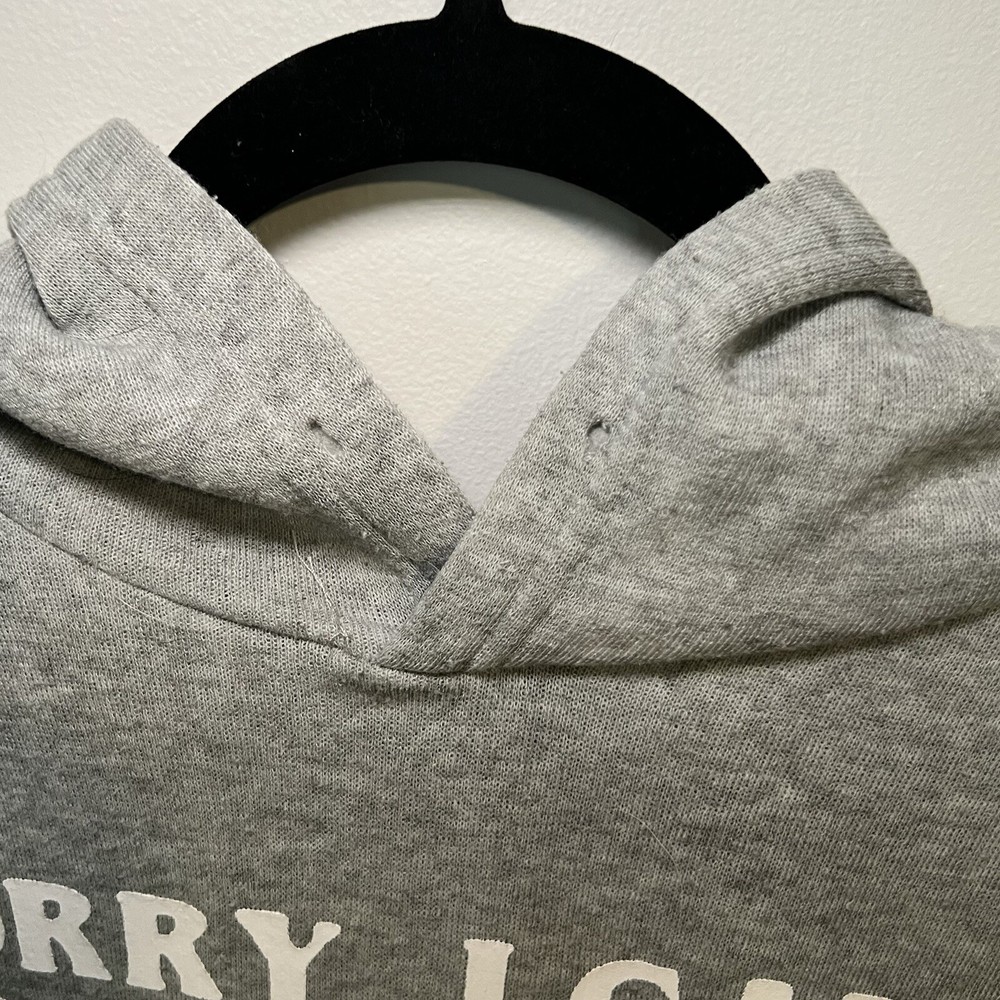 Slip into the comfort of this gray Stranger Things hoodie, sized generously to fit a wide range of bodies with its size L designation. It's a classic pullover style, perfect for those who appreciate a blend of casual wear with a pop culture twist. The long sleeves and hood provide ample coverage, making it an ideal choice for cooler weather or for lounging at home. With its cotton blend construction, this hoodie ensures both warmth and breathability, allowing you to move freely whether you're out for a walk or just chilling with friends. The famous "Sorry I Can’t I’m Stuck In The Upside Down" quote adds a unique touch to the design. No strings in hoodie