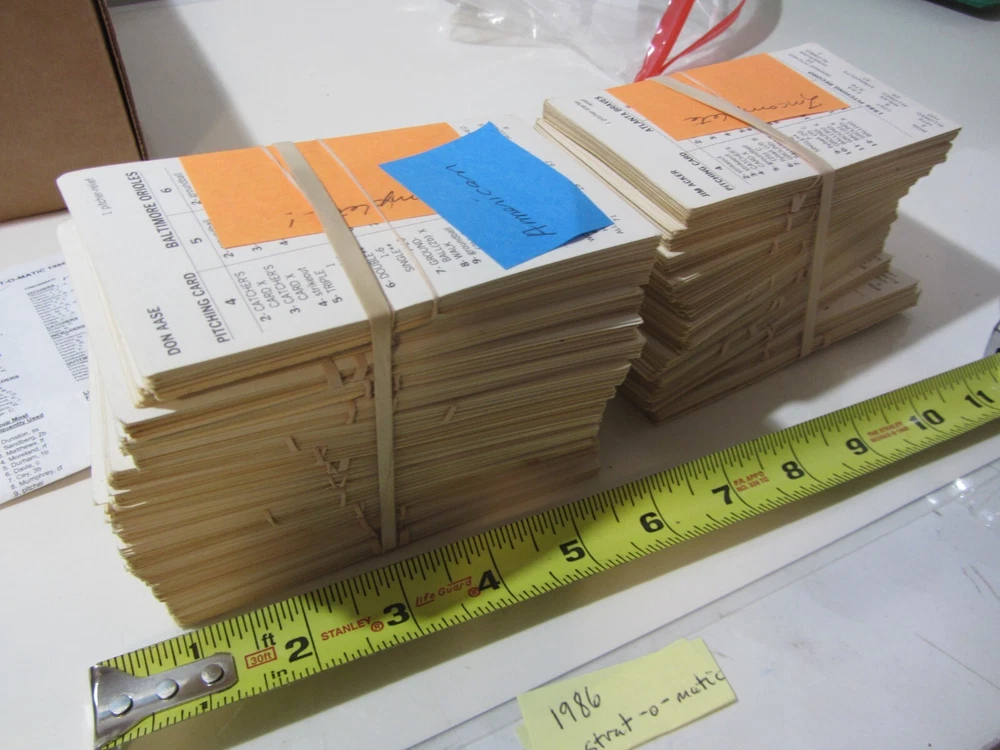 1986 Strat O Matic stack of baseball cards - 100s of cards! - decent condition vintage cards from estate - looks like previous owner sorted by team and league - these are incomplete though abundant and still valuable - these are pre-owned and stored for decades - you please make sense of these - you will get exactly what you see photographed! the "K3" photo simply tells me where to find your item(s) for shipping
