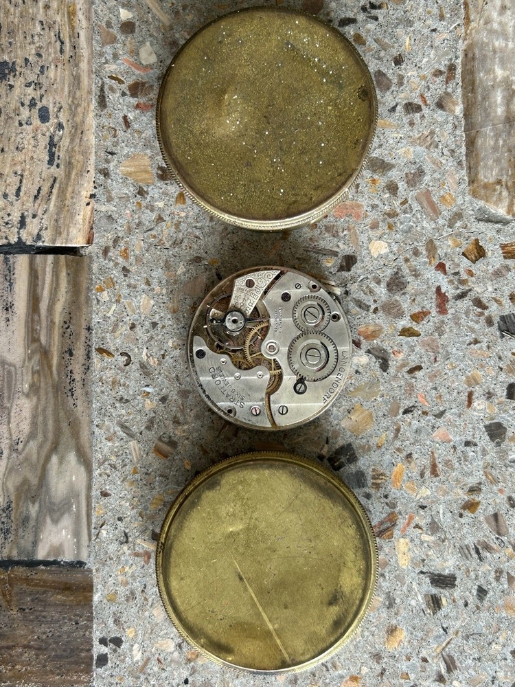 Display:AnalogPersonalize:NoWith Service Records:NoDepartment:MenCustomized:NoClosure:Open FaceMovement:Mechanical (Manual)With Papers:NoWater Resistance:Not Water ResistantCountry/Region of Manufacture:SwitzerlandSeller Warranty:NoType:Pocket WatchIndices:Arabic NumeralsWith Original Box/Packaging:NoWith Manual/Booklet:NoVintage:YesBrand:AntiqueFeatures:12-Hour Dial