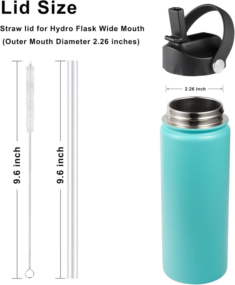 Straw lid for Hydroflask Wide Mouth, Lid Flexible Handle Fits black Product Features TOP DESIGN : The wide mouth flexible straw lid is designed with soft and super comfortable flexible handle strap,easy to grasp and carry your favorite wide mouth water bottle wherever you go. Flip straw top lid allow one-handed drinking for adult and kids,a high-flow rate to meet your daily hydration on-the-go. EASY TO USE : Straw lid in flip design, easy to open and close by one hand. Straw cap makes hydration an easy thing with smooth flow. Good replacement lids with straw for your wide mouth and let you enjoy routine hydration and drink more water. HIGH QUALITY : Easy sipping straw mouth makes straw lid a perfect straw cap for wide mouth water bottle. Great choice straw lid to upgrade your wide mouth 18oz 32oz 40oz. LID IN BEST VALUE : Straw lid compatible with 18 oz 20 oz 32 oz 40 oz wide mouth. Straw lid comes with 2 separate straws and 1 straw cleaner. REMIND: Straws are a bit long, easily cut straws by scissors for different wide mouth water bottle. Current straws fit 40 oz perfectly, need to shorten straws a little for sizes 18 oz 20 oz 32 oz wide mouth. CUSTOMER ORIENTATION : BPA free. All materials have passed the test of international authority. You can buy it with complete confidence. And we are happy to provide 100% money back if you are not fully satisfied with the straw lid. NOT for other brand or sizes unmentioned. Shipping: Shipping is complimentary within the lower 48 US States. We Do Not Ship to PO/APO Boxes, HI or Alaska We Do Not Ship Outside of the Continental US All items ship within 24-72 hours of Payment For large items that require Freight shipping a valid phone number is required to call and schedule your delivery Terms of Sale and Feedback: Feedback is extremely important to us and eBay If you are satisfied with our transaction, please take a moment to leave Positive Feedback. YOUR Satisfaction is our #1 Priority! If there are any issues, PLEASE contact us BEFORE leaving a neutral or negative rating so that we may resolve any concerns. We PROMISE we can make you happy if you give us a fair chance. Returns / Concerns: All items qualify for returns within 14 - 30 days of receipt. Buyer is responsible for return shipping on any item that is not damaged Please be sure this is an item you want before making your purchase. Customer Satisfaction is our TOP priority! All items are IN STOCK at time of listing. Inventory on eBay changes constantly and it is impossible to maintain a perfectly accurate count of all items. Please do not penalize us if we have to issue you a refund! Thank You For Your Business!