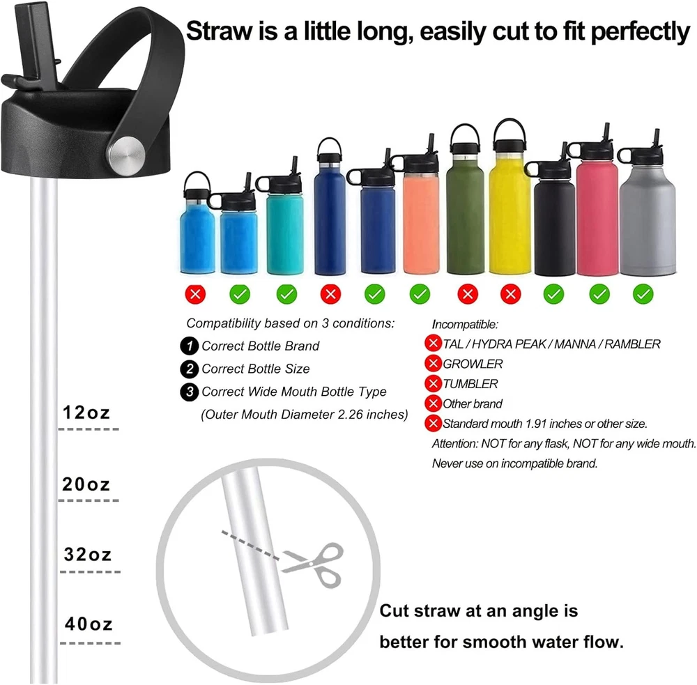 Straw lid for Hydroflask Wide Mouth, Lid Flexible Handle Fits black Product Details Material: Plastic Color: black Brand: Mijafaron Style: Modern Product Dimensions: 2.26"L x 2.26"W Item Weight: 0.19 Pounds Shape: Round Number of Pieces: 1 Is Dishwasher Safe: Yes Closure Type: Flip Top Is Microwaveable: No Manufacturer: Mijafaron Item Package Dimensions L x W x H: 9.61 x 3.66 x 1.77 inches Package Weight: 0.09 Kilograms Item Dimensions LxWxH: 2.26 x 0.01 x 9.6 inches Brand Name: Mijafaron Number of Items: 2 Material: Plastic Color: black Brand: Mijafaron Style: Modern Product Dimensions: 2.26"L x 2.26"W TOP DESIGN : The wide mouth flexible straw lid is designed with soft and super comfortable flexible handle strap,easy to grasp and carry your favorite wide mouth water bottle wherever you go. Flip straw top lid allow one-handed drinking for adult and kids,a high-flow rate to meet your daily hydration on-the-go. EASY TO USE : Straw lid in flip design, easy to open and close by one hand. Straw cap makes hydration an easy thing with smooth flow. Good replacement lids with straw for your wide mouth and let you enjoy routine hydration and drink more water. HIGH QUALITY : Easy sipping straw mouth makes straw lid a perfect straw cap for wide mouth water bottle. Great choice straw lid to upgrade your wide mouth 18oz 32oz 40oz. LID IN BEST VALUE : Straw lid compatible with 18 oz 20 oz 32 oz 40 oz wide mouth. Straw lid comes with 2 separate straws and 1 straw cleaner. REMIND: Straws are a bit long, easily cut straws by scissors for different wide mouth water bottle. Current straws fit 40 oz perfectly, need to shorten straws a little for sizes 18 oz 20 oz 32 oz wide mouth. CUSTOMER ORIENTATION : BPA free. All materials have passed the test of international authority. You can buy it with complete confidence. And we are happy to provide 100% money back if you are not fully satisfied with the straw lid. NOT for other brand or sizes unmentioned.