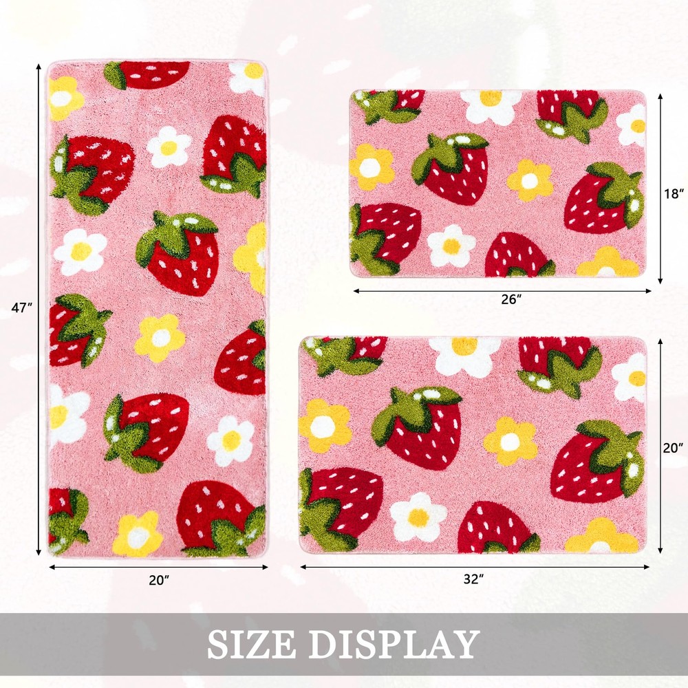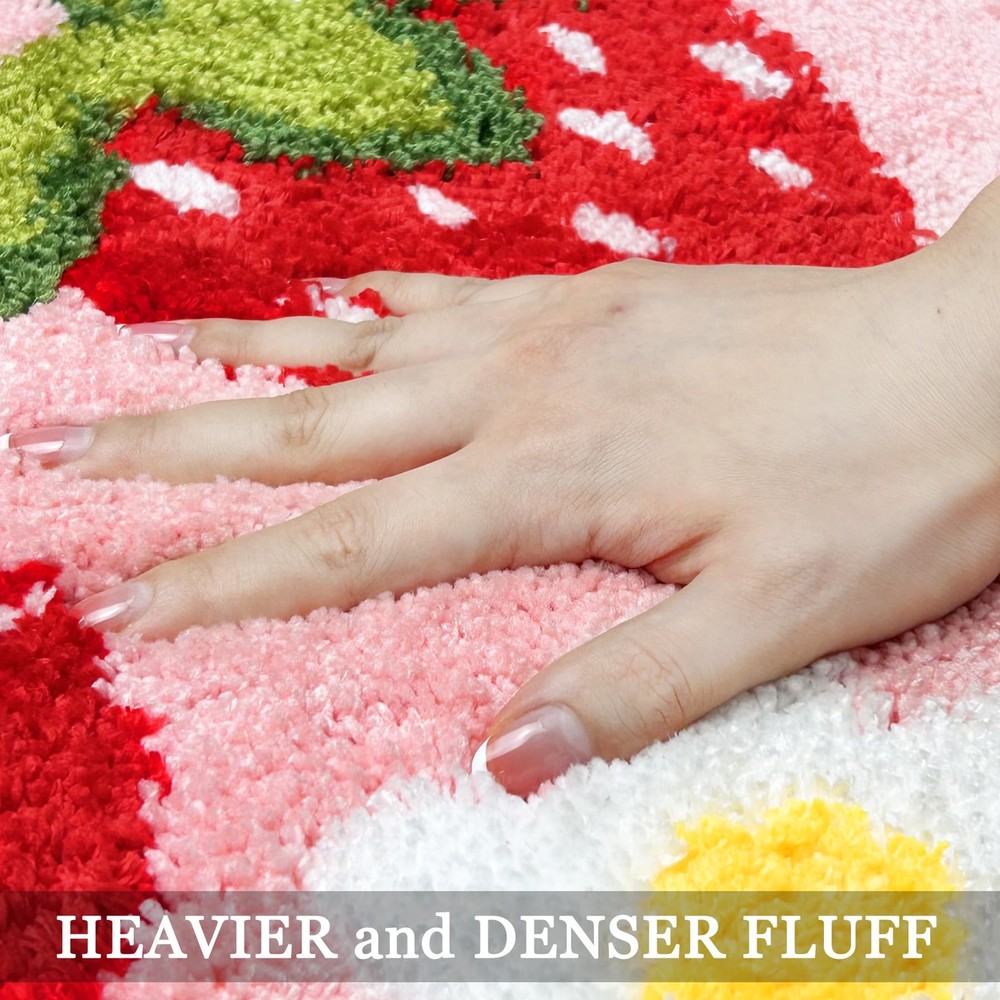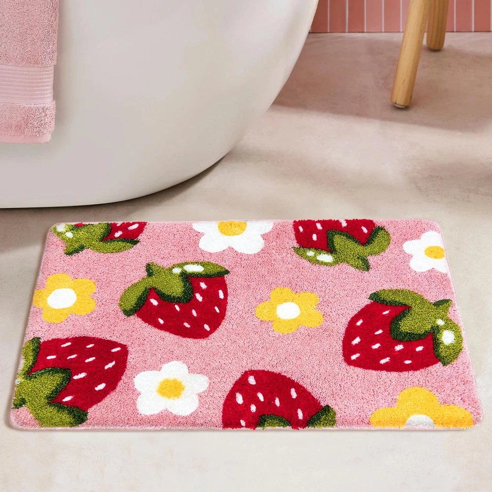 Strawberry Pink Bath Mat Cute Soft Bathroom Rug Non-Slip Decor