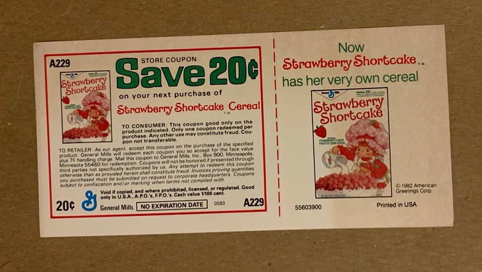 Hi there, This is a Strawberry Shortcake General Mills Cereal 1982 Coupon. It is in good condition with minor ware. It does have light yellowing throughout. (PLEASE SEE PICS FOR DETAILS AND CONDITION). I am always happy to combine shipping on all purchases. Thanks for looking and have a great day!