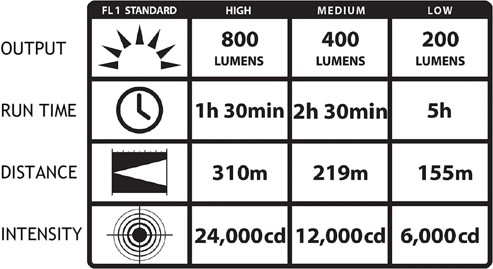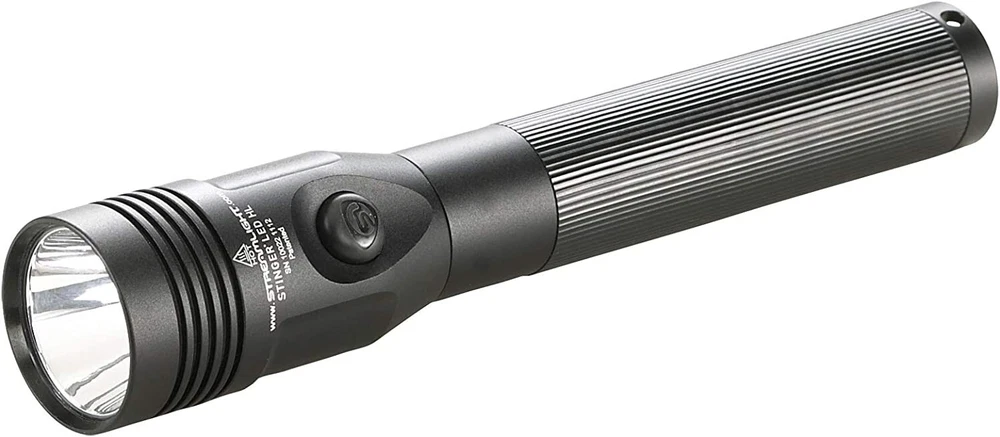 Streamlight 75430 Stinger LED HL Flashlight AC/DC 2 Holders The Stinger LED HL is a high lumen flashlight that provides 800 lumens of maximum illumination. Its wide beam pattern gives you a bright flood light that will light up the area around you. Multi-function On/Off push-button switch lets you choose three lighting modes and strobe:3-cell, 3.6 Volt Ni-MH sub-C battery, rechargeable up to 1000 times High for maximum illumination: 800 lumens; 310m beam; runs 1.5 hours; 24,000 candela Medium for intense brightness and longer run time: 400 lumens; 219m beam; 2.5 hours; 12,000 candela Low for extended run time: 200 lumens; 155m beam; runs 5 hours; 6,000 candela Strobe for signaling or disorienting: runs 3 hours Charging:Machined aircraft aluminum body with non-slip rubberized comfort grip; anti-roll rubber ring included Steady charger: Fully recharges within 16 hours Smart charger: Fully recharges within 4.5 hours (5V/1A USB input) or 3 hours (12V DC input) Smart PiggyBack ® charger: Fully recharges within 7.5 hours (5V/1A USB input) or 4 hours (12V DC input) IPX4 water-resistant; 1 meter impact resistance tested LED technology impervious to shock with a 50,000 hour lifetime Unbreakable polycarbonate lens with scratch-resistant coating Deep-dish parabolic reflector produces a concentrated beam with optimum peripheral illumination Optimized electronics provide regulated intensity throughout battery charge 8.41” (21.36 cm); 12.4 oz (352 g) Serialized for positive identification Limited lifetime warranty Assembled in USA
