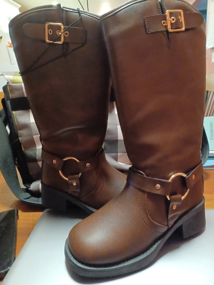 NEW Minimalist Side Zipper Slouchy Fashion Outdoor Brown Boots Size 6.5 EUR 37