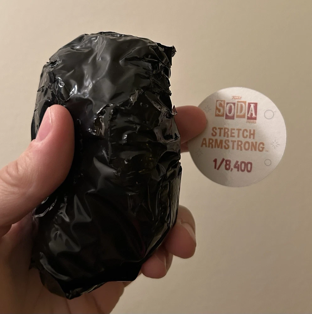 This is the common variant of the Stretch Armstrong Funko Soda. All cans were opened to verify they were common variants but the inner plastic around the figure is still sealed.