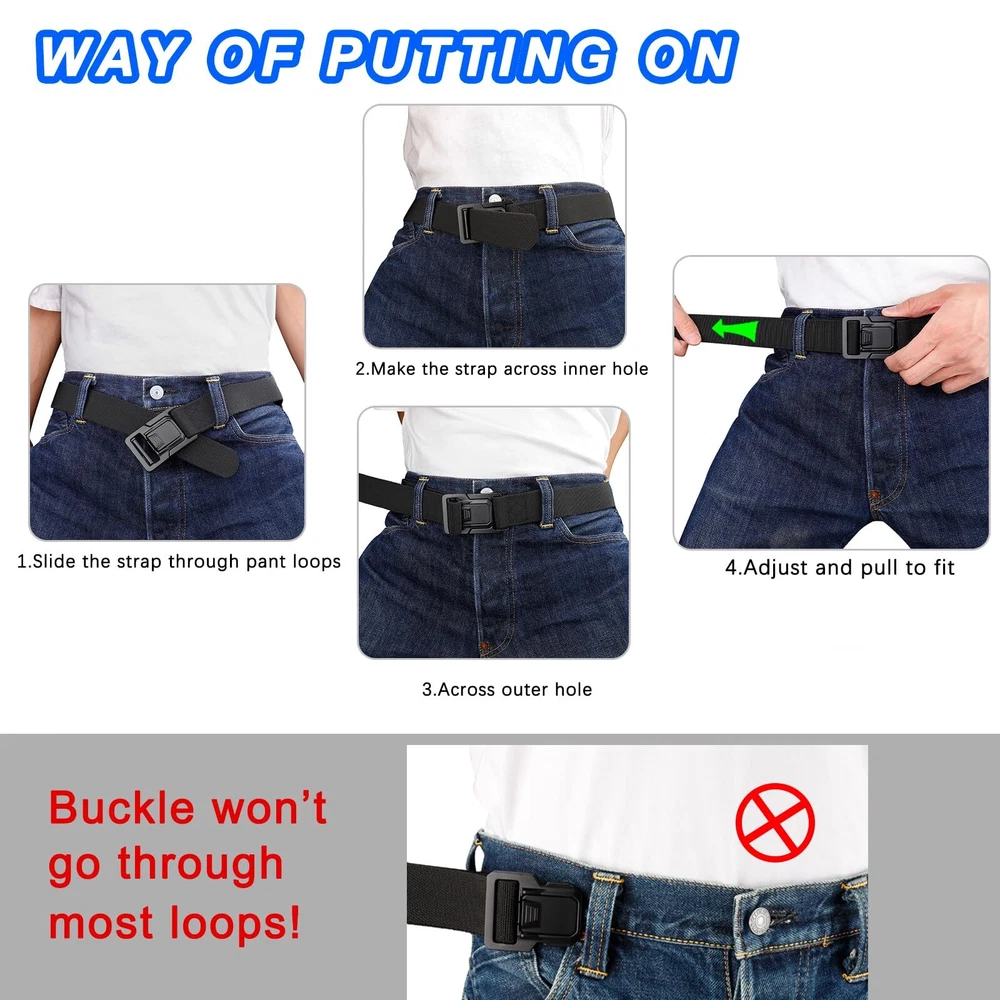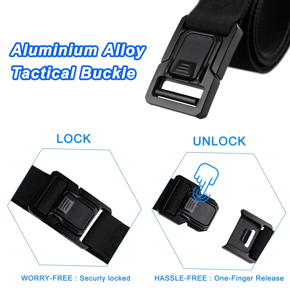 ⭐️[ Heavy Duty Upgrade Buckle ]: The tactical belt buckle is made from premium quality aluminium alloy, whose merits are lightweight, anti-corrosion and weatherability. And the buckle features heavy-duty, quick release and easy to use. ⭐️[ Comfortable Elastic Strap ] : Our stretch tactical belt is designed with no holes for a perfect fit that guarantees maximum comfort and convenience adjustability for all men, making it perfect for daily, work, outdoor activities such as hiking, fishing and mountain climbing. ⭐️[ A Great Combination ] : Combine the sturdy alloy buckle with the wrinkle-free strap is for durable and stretchy to withstand wear and tear from rugged outdoor adventures or everyday use. Making it ideal for men in the military, SWAT, rigger, security staff and other outdoor enthusiasts. ⭐️[ Packed in Gift Box ]: Our elastic tactical belt comes in a gift box with three sizes to choose from, making it the perfect gift idea for that special man in your life who loves outdoor activities or simply needs a strong, durable work belt that won't let them down. ⭐️[ Satisfying Service ] : 30-Day Money-Back Guarantee. All tactical belts will be reviewed carefully before delivery to hope you will enjoy the shopping. Please kindly contact us if you get any question about the belt and we will reply within 24 hours.