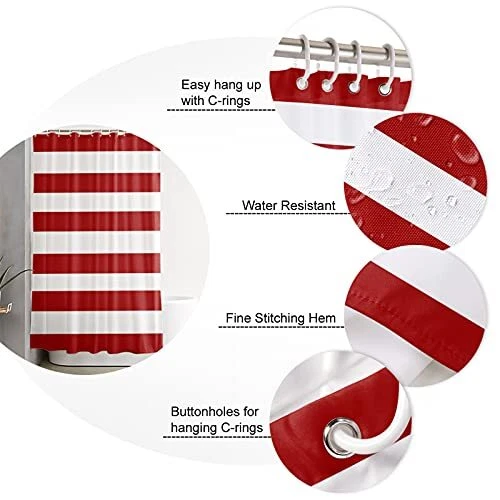 Return Policy Fast Delivery Trusted seller Red and White Stripe Shower Curtain for Bathroom, Waterprrof Polyester Fabric Shower Curtains Christmas Red Decorative Curtains for Bathroom Curtain Sets with Hooks, Small Stall Size 36" x 72" Product Description CLASSIC RED STRIPE DESIGH - Classic stripe pattern and lovely color make your bathroom fabulous. Beautifies your home decor. Brings you a brilliant home and a bright mood. MATERIAL - High quality Polyester Fabric for quick-drying, texture and durable bathroom shower curtain,anti-wrinkle,environmentally friendly material. SHOWER CURTAIN SET INCLUDING - 36x72inch long shower curtain and reinforced top header with rustproof grommets prevents from tearing and promotes the shower curtain liner long lasting. One shower curtain and 12-Pack plastic Shower Hooks WATER REPELLENT&EASY TO INSTALL - The curtain hooks can be installed in a minute just by using the hook connecting the loops to the curtain rod to hold the shower curtain well. Shower curtain waterproof a firm yet smooth texture, which promotes water bead formation and prevents curtain soaking and bathroom floor messes. Small water beads form across the curtain, affording gentle water removal and swift shower curtain drying Unique Funny Decorative Shower Curtain - This stirpe shower curtain will compliment any home/hotel/ bathroom/apartment/camper, RV, dorm setting and providing an unparalleled, upscale look. Provides privacy and decorative appeal,use with or without curtain liner. Shipping Returns Payment Shipping Shipping is FREE to all addresses other than APO/PO boxes in the lower 48 states. All our stock ships from US-based warehouses. Shipped via USPS or UPS (depending on location and package weight) Unless stated otherwise, all orders will ship within 24-72 hours of your payment being processed. Check our feedback to see the great reviews of FAST shipping we offer. Returns Seller does not accept returns Payment We currently accept payment via eBay managed payments only. Once payment is cleared, we will dispatch your shipment within 1-3 business days. Please refer to the "Shipping" tab for more information regarding shipping speed to your destination.