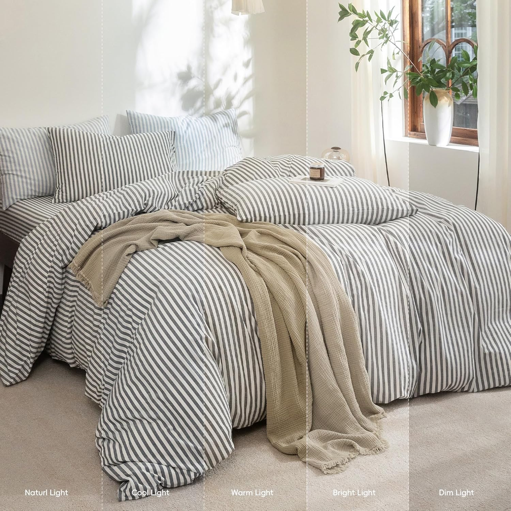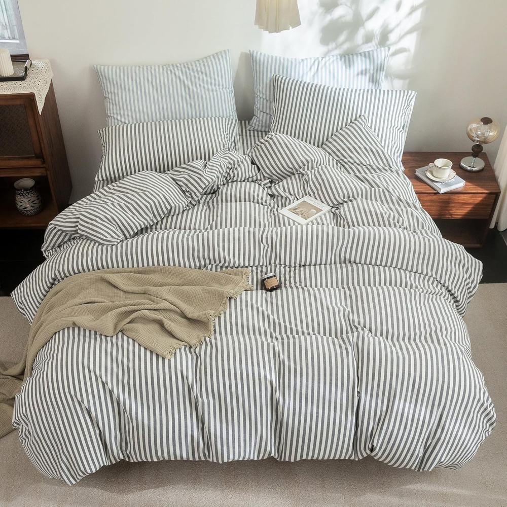Store New Arrivals Add to Favorite View Feedback Contact Fast deliveries to the customer's home Quality customer service John Make the customers happy! Striped Duvet Cover Set 100% Washed Cotton Linen Feel Super Soft Breathable Cozy 3 Pieces Bedding Sets Dark Grey White Classic Stripes King Description Made from 100% washed cotton, the sturdy fabric can withstand normal wear and tear and is very washable, so the cotton duvet cover can retain its original appearance after washing without worrying about fading and shrinkage due to overwash Linen texture, soft and cozy (the more you wash it, the softer it gets), as comfortable and breathable as touching cotton, just like sleeping in a cloud. Slightly wrinkled appearance, easy to create a warm and classic fashion bed, can make you very comfortable at night King Size Package Includes: Duvet Cover (1 piece): 104"W x 90"L; Pillowcases (2 pieces): 20"W x 36"L; Duvet/comforter inside is not included The duvet cover queen size cotton has a hidden zipper for easy insertion and removal of the down. 8 corner ties: fastened to the duvet (sold separately) for a secure fit, preventing the duvet from sliding around during sleep and affecting your sleep Care instructions: Machine wash cool; tumble dry gently; iron if required. They wash well and get softer each time, and the hair on cats and dogs can easily fall off, allowing you to spend precious time with your family and pet FOSSA linen duvet cover 3-piece set is also a perfect accompany for your family and friends, I believe they will feel very happy and grateful when they receive this comforter cover. (For all seasons) Product description Fossa—where comfort meets style Soft, breathable, cooling and lightweight—just like a dream. Breathable duvet cover to create your own private space If you want a linen style bedding, this duvet cover set is beautiful and perfect Pillowcase ends with envelop closure, simple and clean, easy to remove and wash With a hidden zipper closure, easy to get the duvet insert in/out If you want a linen style blanket , is beautiful and perfect 1 Sense of Atmosphere 2 100% Cotton Fabric 3 Envelop Pillowcase 4 Hidden Zipper Closure 5 Linen Texture Designed for restful nights and refreshing mornings Different monitors will have a slight color difference Easy to maintain and durable, becoming softer with each wash. 4-Layer 100% Cotton Gauze Super Soft & Breathable Throw FOSSA will always be with you Olive Green Muslin Blanket FOSSA will always be with youMuslin Blanket Beige Muslin Blanket FOSSA will always be with you Dark Orange Muslin Blanket FOSSA will always be with you Dark Gray Muslin Blanket FOSSA will always be with you Bright White Muslin Blanket FOSSA will always be with you Beige Gray Muslin Blanket Different Colors Create Different Styles Color Stripes - Dark Grey (No Comforter) Pattern Striped Material Cotton Size King (104" × 90") ABOUT US We offer the best prices around on high quality products. Our E-store includes media such as books, movies, music and games while offering electronics, toys, sporting apparel, clothing, tools, general home, garden items and more. SHIPPING We are always working hard to ensure your package arrives as soon as possible. Please understand that some factors like weather, high postal traffic, and the performance of shipping companies are outside of our control. We offer free shipping to the lower 48 states and ship within 2 business days of payment, usually sooner. We do not accept P.O. Boxes. Please provide a physical address. For shipping outside of the continental USA, we only use eBay's Global Shipping Program. The item is shipped to KY and then sent to the rest of the world. International customers are responsible for all duties and taxes. Continue to 'check out' to calculate costs for shipping the item to your country. Messages regarding eBay's Global Shipping Program MUST be directed at eBay EXCLUSIVELY. RETURNS We offer a 30-Day Return Policy on items in which you are not completely satisfied with. You have the option of a full-refund or an exchange of the item. No returns are available on items shipped outside of the USA PAYMENT We accept PayPal. CONTACT US This page content is yet to come Please ad us to your favorite seller and visit again later Thank You CUSTOMER SATISFACTION We try our very best to make sure every customer is completely satisfied. If there's a problem, message us! We're happy to help. WE ACCEPT