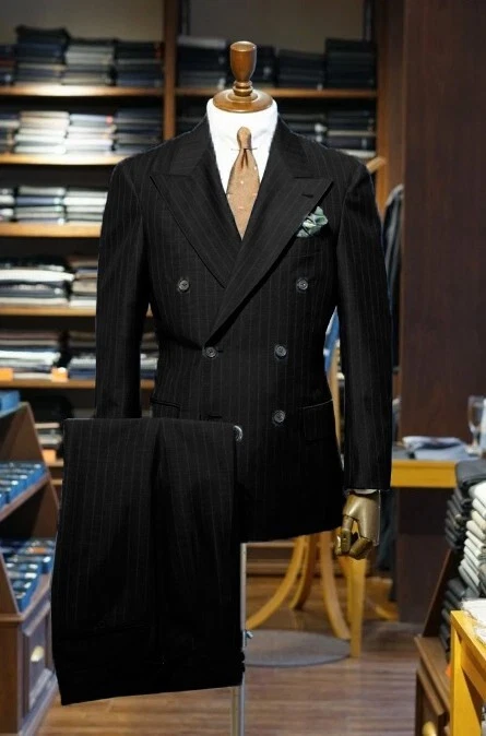 Striped Men Suit Peak Lapel Double Breasted Formal Business Wedding Groom 2 Pcs