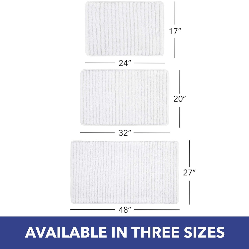 SoHome Striped Bathroom Rug Mat, Super Soft Extra Absorbent Shag Bath Mat Rug, Perfect Plush Carpet Mat for Shower and Bathroom, Machine Washable, Non Slip, 27”x48” White STYLISH STRIPE DESIGN: Fashion and function meet in the SoHome Chino Bath Mat. It features a stylish, tonal stripe design in shades of white that will add a chic, modern decorative accent to your bathroom while also giving you a soft place to step. LUXURIOUS, PLUSH BATH MAT: The thick, plush construction of soft, 100% polyester yarns offers cozy comfort underfoot for when you step in and out of the bath or shower. NON-SKID BACKING: The non-skid, polyurethane backing keeps your bath rug from slipping and helps to keep it in place on any surface. VERSATILE: Place this versatile, 27" x 48" rug in your bathroom, entryway, kitchen, or next to your bed in your bedroom. EASY CARE: Machine wash or spot clean as needed. The SoHome Chino Bath Mat features a stylish, tonal stripe design that will add a chic, modern accent to your bathroom decor while also giving you a cozy place to step. The thick, plush, 100% polyester yarns offer comfort underfoot for when you step in and out of the bath. Non-skid backing keeps your bath rug from slipping and helps to keep it in place on any surface. Place this versatile rug in your bathroom, in your entryway, kitchen, or next to your bed in your bedroom. Machine washable for easy care. SHIPPING Domestic Buyers - We have confidence in our products, but if you are not fully satisfied please contact us within 30 days of purchase and you will get full refund. - We ship within 3 business days of payment, usually sooner - We offer FREE shipping on all orders! - We only ship to the lower 48 states, no APO/FPO addresses or PO Boxes allowed International buyers – please note: Import duties, taxes, and charges aren't included in the item price or postage cost. These charges are the buyer's responsibility. - Please check with your country's customs office to determine what these additional costs will be prior to bidding or buying. * Order Cancellation Policy ** You can return a product for up to 30 days from the date you purchased it. 1. The seller reserves the right to cancel the special case only due to eBay cancellation fee. 2. The decision of seller is the final. 3. The seller will respond to the cancellation request within 2 business days. Please wait for the result of cancellation. 4. In case the cancellation is not completed by some reasons, the buyer can follow the options below to get the refund. 4.1 The buyer can reject the item when it arrives. 4.2 The buyer can send the item back to the seller within 30 days If the buyer receives item (USA Shipment ONLY). The seller will provide the FREE return label to the buyer when the buyer opens " Return Item" case on eBay by using the reason as "Change my mind" ONLY. 5. When buyer has placed the order. The order will be processed and completed by automatic warehouse system within 5 minutes. In case that buyer sends the cancellation request after 5 minutes of placing the order, the request will be rejected. **Sending direct message to cancel the order is not allowed for every case.* Return Policy For the return case - If buyer would like to return the items for refund or replacement, please CONTACT SELLER to receive the free return label from seller. The refund or replacement will be processed with the tracking number of return label which is provided by seller only. The other ways of return which are not approved by seller will not be processed for the refund or replacement.