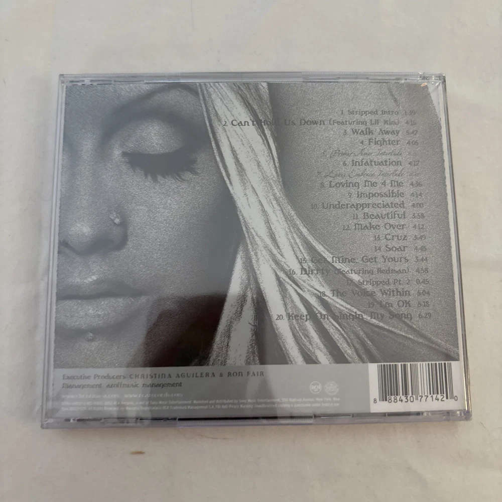 gtin13:0078636803722Release Title:StrippedRelease Year:2002Run Time:78 min.UPC:0078636803722Record Label:BMG (Distributor)Genre:Rock, Rock & PopArtist:Christina Aguilera, Redman, Dave Navarro, Linda Perry, Eve, Alicia Keys, Glen Ballard, Lil' KimFormat:CDProducer:Rockwilder, Rob Hoffman, Jasper Cameron, Linda Perry, Christina Aguilera, Scott Storch, Heather Holley, E. Dawk, Balewa Muhammad, Steve Morales, Glen Ballard