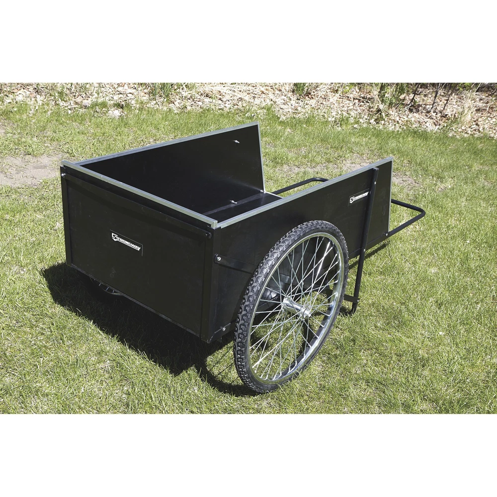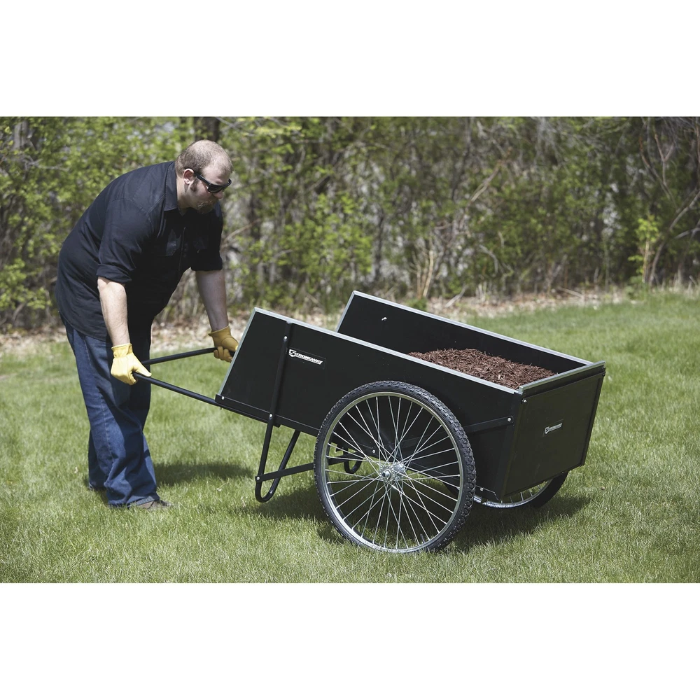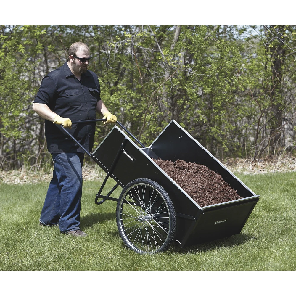 This Strongway Garden Cart has a 400-lb. working load capacity, (2) 26in. spoked pneumatic wheels with ball bearing hubs for smooth movement, a rigid steel frame with rust-resistant powder-coat finish and sturdy plywood panels with attractive aluminum edging. The removable rear panel makes for easy loading and unloading. Use this cart for hauling pots, tools, plants, clippings, seed and more. Bed size is 48in.L x 29in.W with 15-1/2in.H. Oversize shipping charge applies. Strongway Garden Cart, 14 Cu. Ft., 400-Lb. Capacity, 26in. Pneumatic Wheels, Steel Frame Northern Tool Item# 46441 Item Weight: 72.2000 lb(s) Manufacturer: Strongway MPN: Warranty: 1 year Limited Warranty. Product Summary: This Strongway Garden Cart has a 400-lb. working load capacity, (2) 26in. spoked pneumatic wheels with ball bearing hubs for smooth movement, a rigid steel frame with rust-resistant powder-coat finish and sturdy plywood panels with attractive aluminum edging. The removable rear panel makes for easy loading and unloading. Use this cart for hauling pots, tools, plants, clippings, seed and more. Bed size is 48in.L x 29in.W with 15-1/2in.H. Oversize shipping charge applies. Features + Benefits Payment Instructions You can pay us securely through eBay. All orders will contain an invoice/receipt. IMPORTANT: We will not honor requests to remove invoices or receipts from packages. No exceptions ON U.S. PURCHASES, Northern currently collects sales tax on purchases shipped to all states except: Alaska, Delaware, Montana, New Hampshire, Oregon Shipping Information This product will be shipped by Parcel. Parcel Shipping: Ground Shipped items must be sent to a physical address and cannot be sent to PO boxes. If a PO box address is submitted without a physical address it may delay your order. We cannot ship to APO/FPO boxes. Please note that we do not ship items on weekends or holidays. More information on shipping and handling times can be found on our Store Policies Page . Customer Care We want you to be satisfied with your purchase; please notify us by email if you have any concerns. Before you send an email message, please check our Help Section . We may already have an answer to your question! We are available to answer your email questions Monday through Friday from 8am - 3pm CST, excluding holidays. If your email is sent on a weekend, holiday or after business hours, we will respond to you on the following business day. Returns may be accepted on most items within 30 days of receipt of the item. All returns require authorization from us. Some returns are charged a 15% restocking fee. Please click the Shipping and Payments tab on this item for specific return information and full details. About Our Products Product Warranty: 1 year Limited Warranty Warranty information and contact details can be found on our Store Policies Page. We are working hard to ensure that the information provided on the eBay product advertisements is accurate and up-to-date. We reserve the right to correct ad errors and/or omissions. Pricing and availability is subject to change without notice. Yes