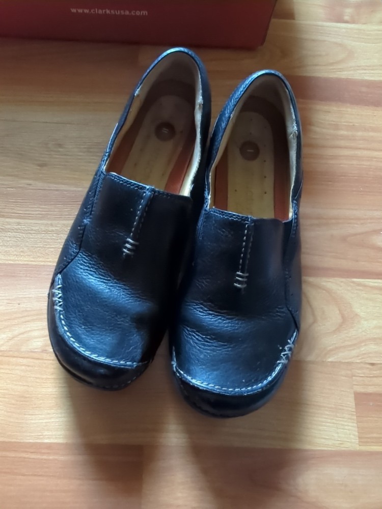 Structured by Clarks womens Flats Shoes Black Leather Slip On 5.5M。 状態はPre-ownedです。 USPS Ground Advantageで発送します。