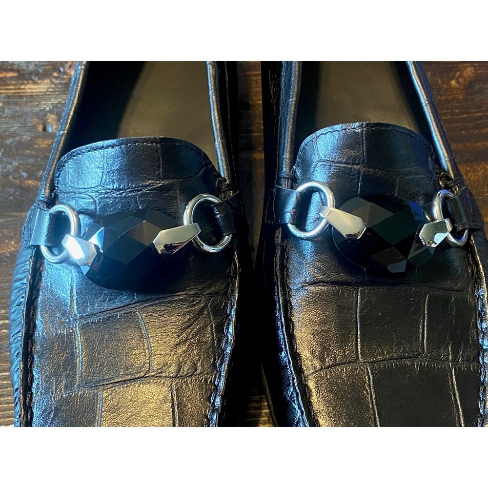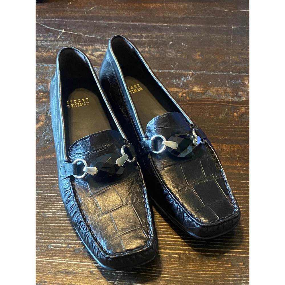 Stuart Weitzman HARDROCK Black Giant Croco Loafer Decorative Gemstone Vamp Size 9 New in Box Made in Spain Length dimensions are in the photos Heel 1"