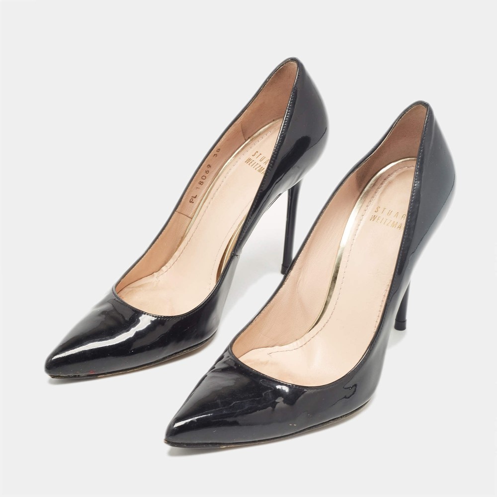 Our eBay Store About Us Contact Us Add to Favorite Sellers Stuart Weitzman Black Patent Leather Pointed Toe Pumps Size 38 Curvaceous arches, a feminine appeal, and a well-built structure define this set of designer pumps. Coming with comfortable insoles and sleek heels, style them with your favorite outfits. Product Details Brand Stuart Weitzman Color Black Includes The Luxury Closet Packaging Outsole Length 22.5 cm Outsole Width 9 cm Size 38 Certified by The Luxury Closet This item has gone through a detailed authentication process overseen by our experts. We offer a lifetime guarantee of authenticity on all our items. How We Check The in-house team of experts at The Luxury Closet is highly trained to verify the authenticity and the condition of the luxury products. They ensure that only 100% authentic items are put on sale.The evaluation process is unique with its own mix of assessment criteria and differs according to the category. Each item is evaluated based on the following combination of hallmarks, hardware, stitching, symmetry, material, craftsmanship, stamping, codes, hologram stickers, and packaging. Our authenticators also check if the items have been modified or amended (e.g., aftermarket diamonds, replaced batteries, repaired bags, etc.) International Buyers Import duties, taxes and charges are not included in the item price. These charges are the buyers responsibility. Please check with your country’s customs office to determine what these additional cost will be prior to buying.