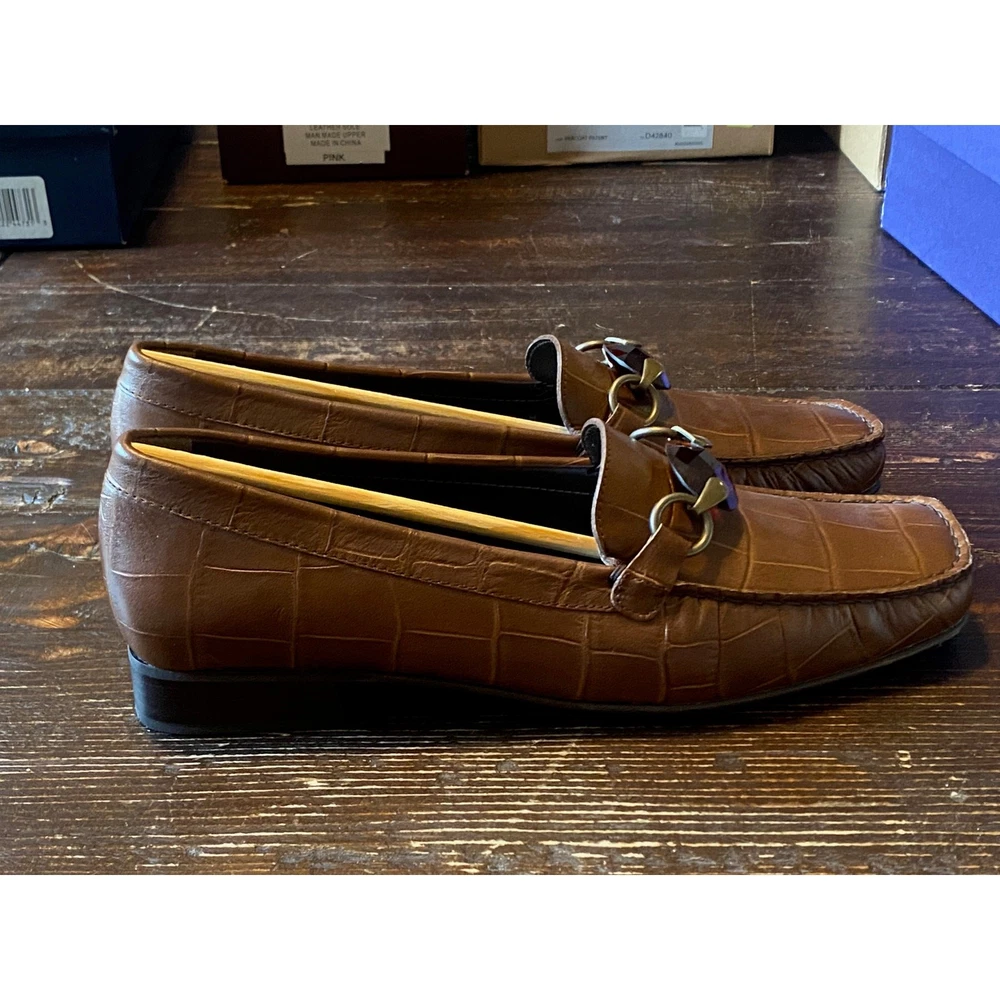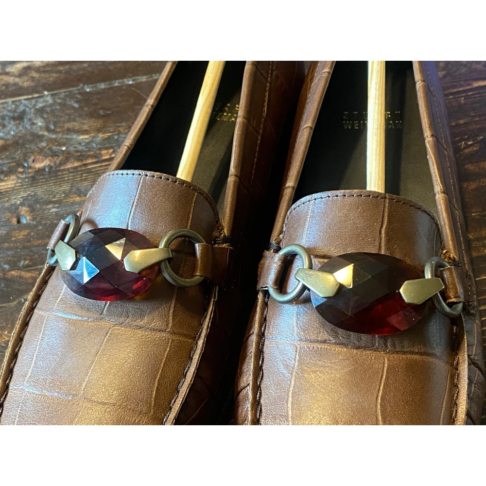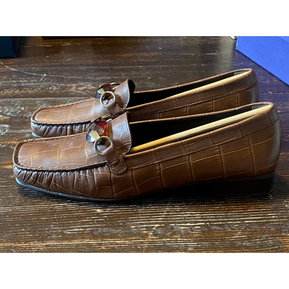 Stuart Weitzman HARDROCK Brown Giant Croco Loafer Decorative Gemstone Vamp Size 9 New in Box Made in Spain Length dimensions are in the photos Heel 1"