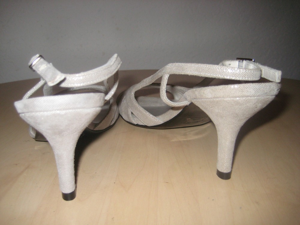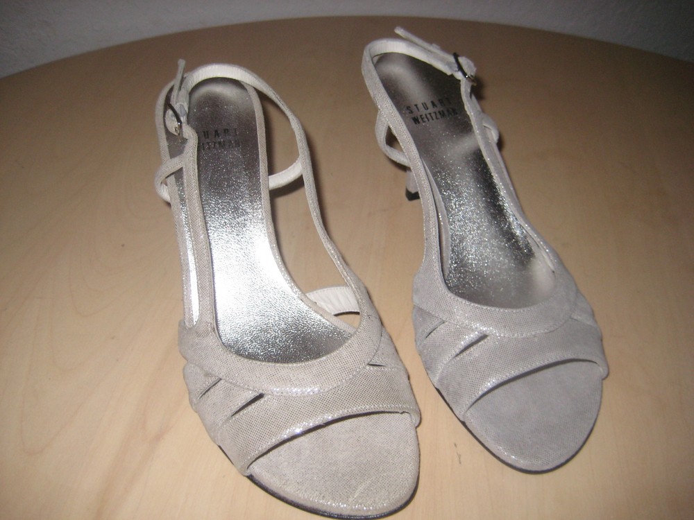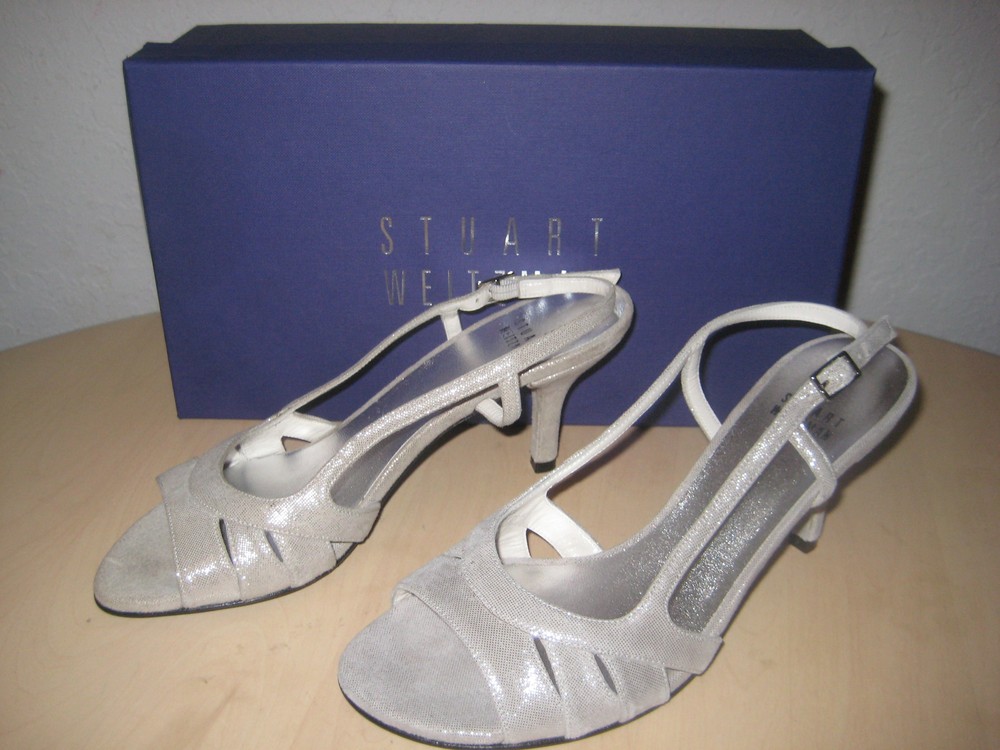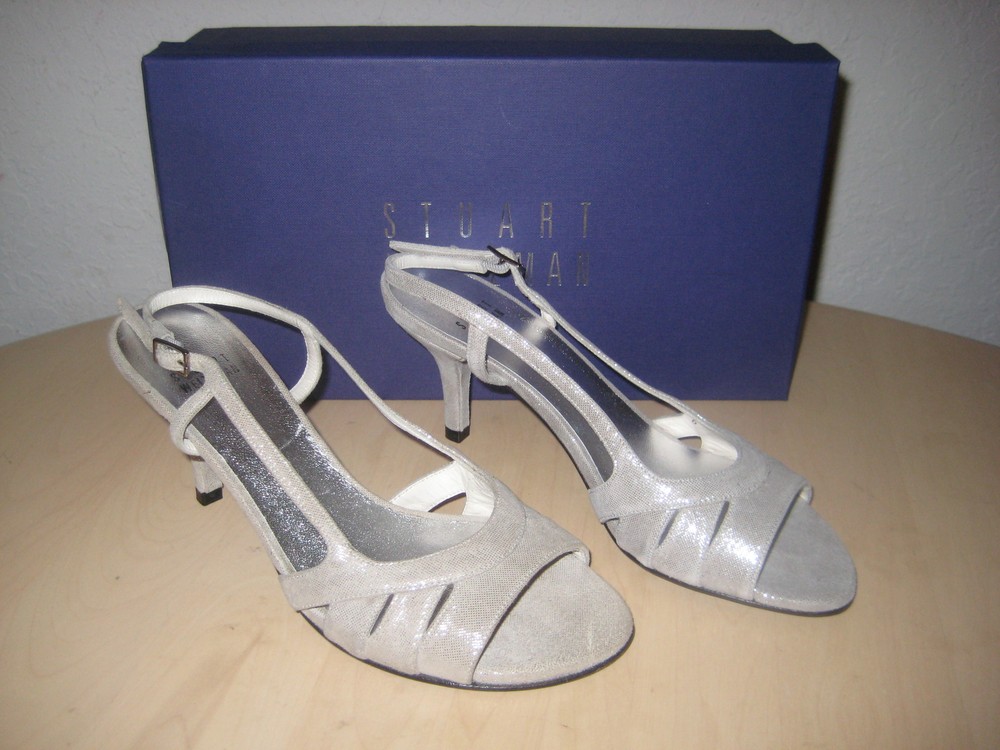 Heel approx. 2-1/2". Stuart Weitzman Shoes Size 6 M Womens New Mischievous Silver Open Toe Heels