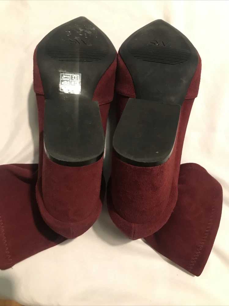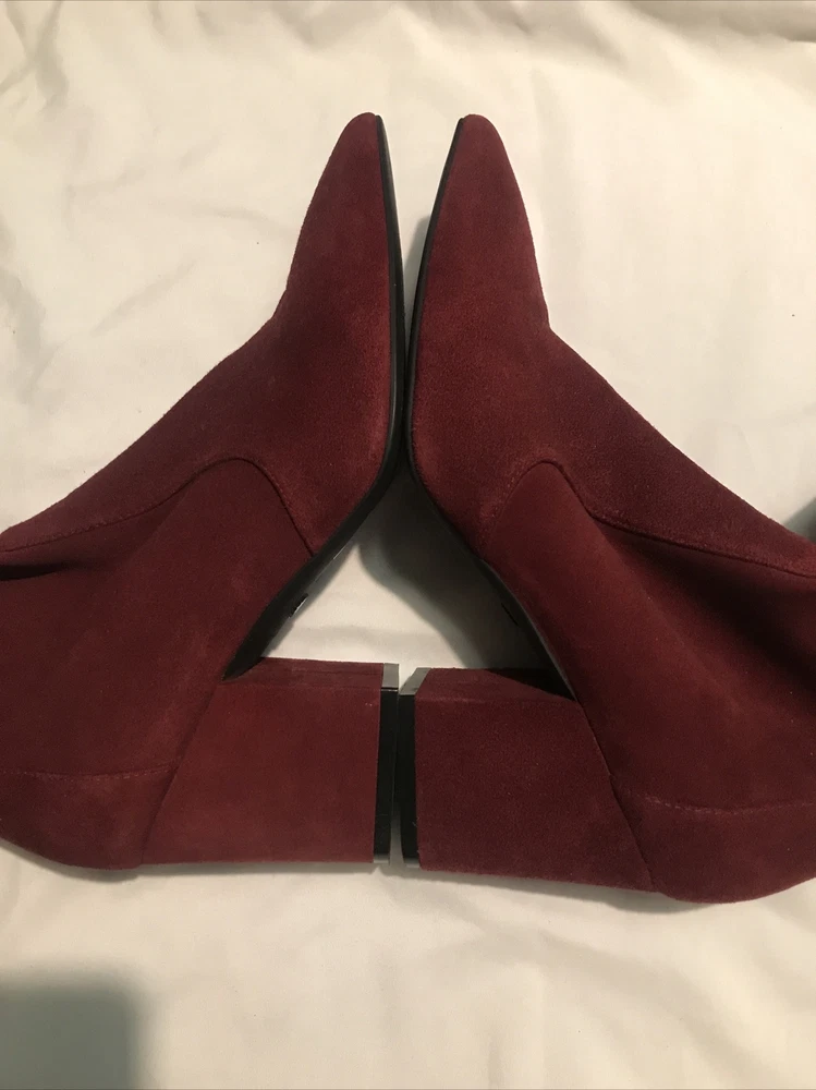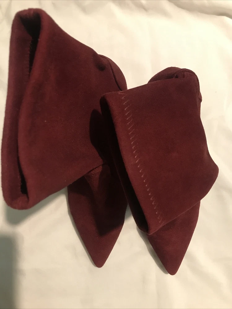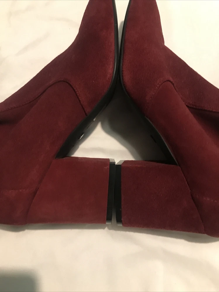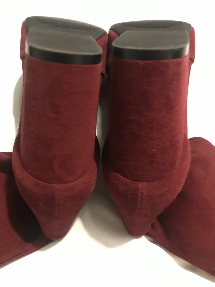 Elevate your shoe game with these stylish Stuart Weitzman Suede Ankle Sock Boots in a beautiful burgundy color. These boots feature a pointed toe and pull-on closure, making them perfect for any occasion from casual to formal. The high block heel adds a touch of sophistication, while the velvet suede upper material and leather lining provide comfort and stretch. These boots are perfect for any season, whether it's winter, summer, fall, or spring. They come in women's size 8 and have a regular calf width. These boots have a versatile style and can be worn for various themes such as festivals, weddings, and even preppy or punk rock. Get your hands on these stunning boots from Spain today! Measure: Shaft 3,5 in Circumference 4,5” Heel 3 in It comes from a smoke free home in very good condition.