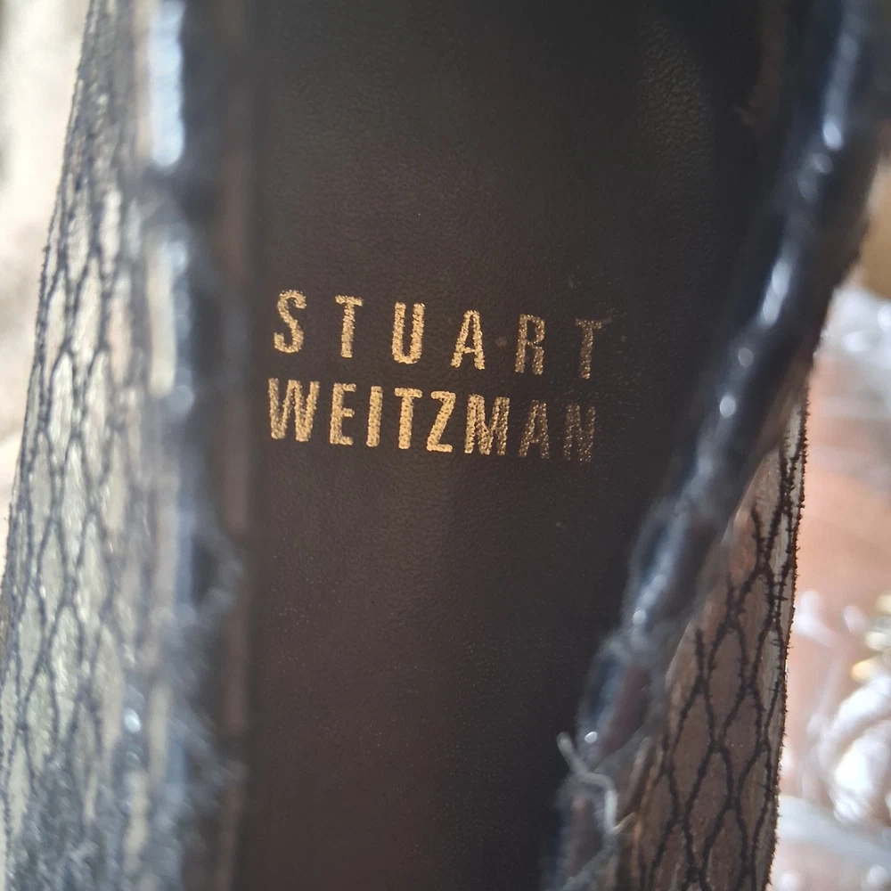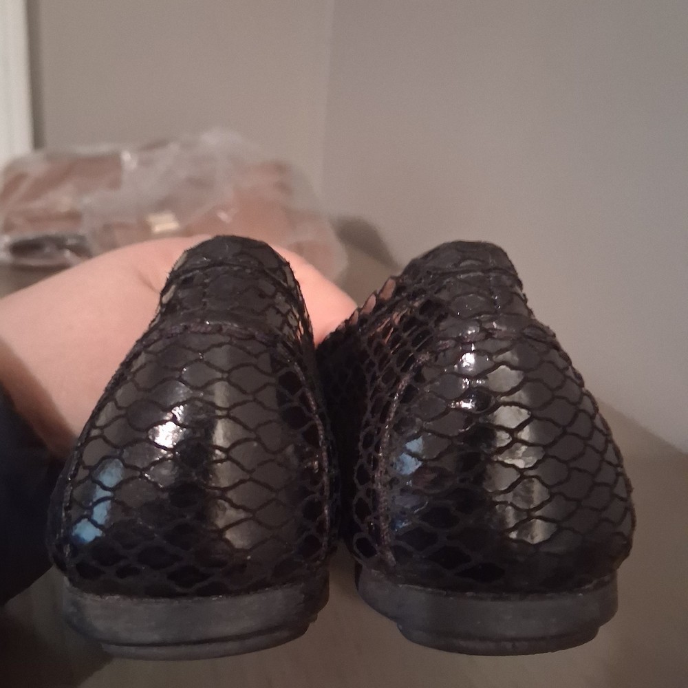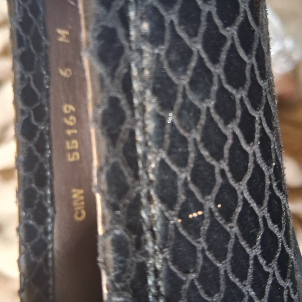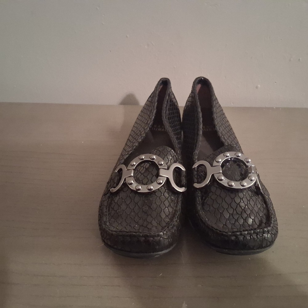 Stuart Weitzman Women's Black Slip-On Flats Metal Medallion Scale Print Size 6 Pre-owned good condition