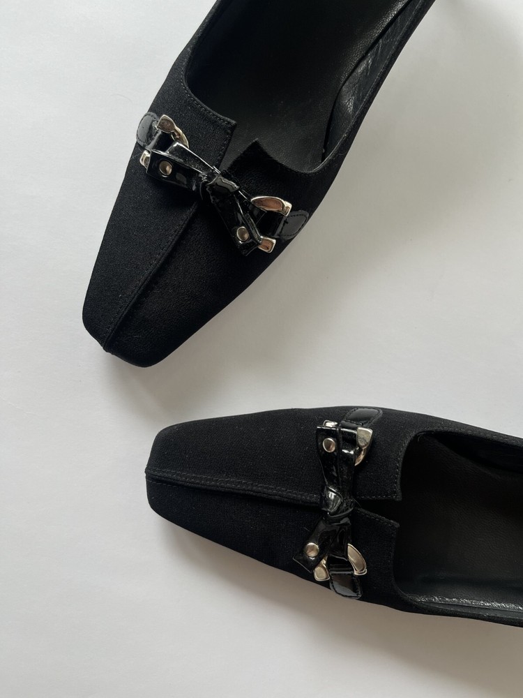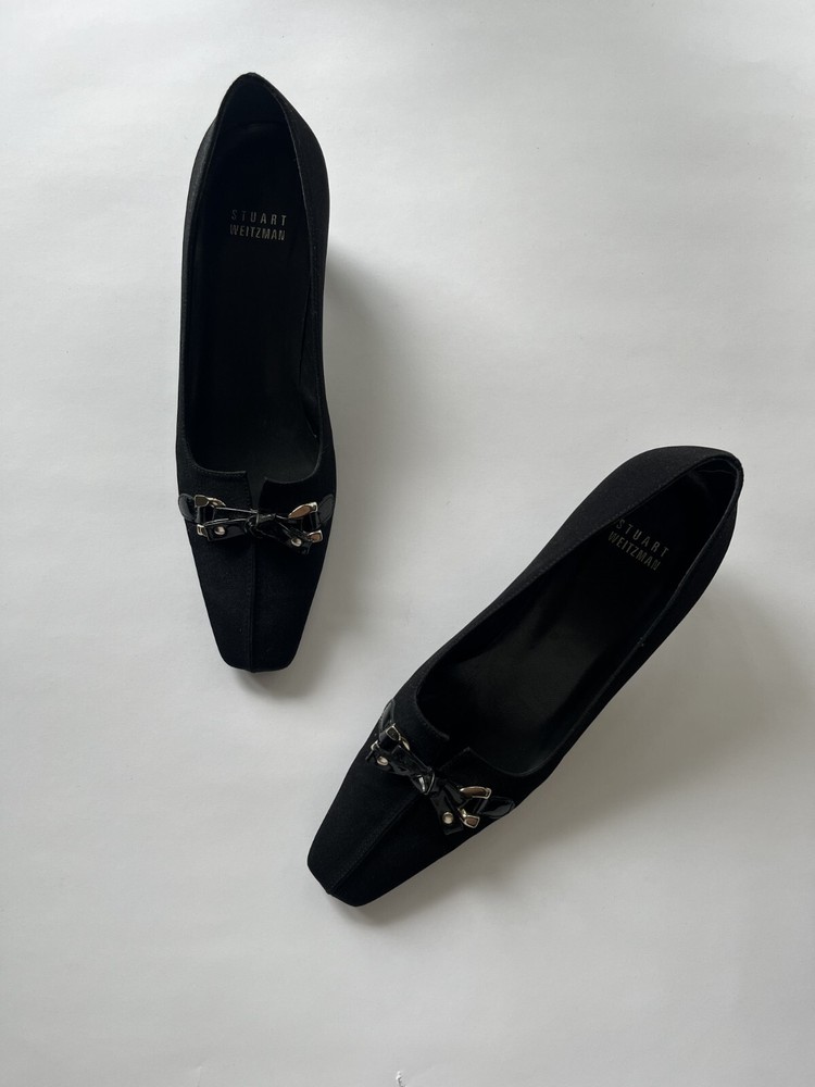 Chic vintage Stuart Weitzman black pumps with a delicate bow detail and elegant low heels —a perfect throwback to the Y2K era. Timeless and versatile, these heels are great for both formal and casual outfits. ✨ Details: Size: US 6.5 (fits EU 35.5-36) Insole length: Approx. 23 cm Heel height: 4 cm Upper: Fabric Insole & Sole: Leather No original box included 🖤 Condition: Pre-owned, very good vintage condition 📦 Shipping: Securely packed and shipped quickly after payment. International buyers welcome! 📸 Need more photos or measurements? Feel free to ask! 💎 A must-have for lovers of vintage and timeless elegance!