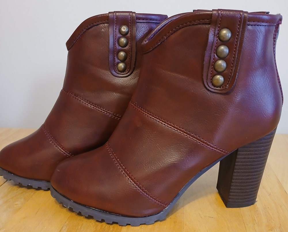 Studded mahogany ankle bootie by Seven in US size 8.5