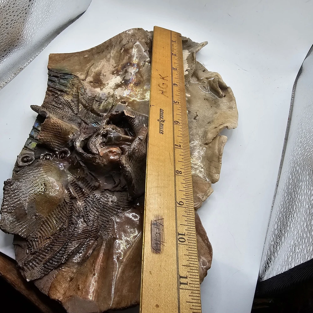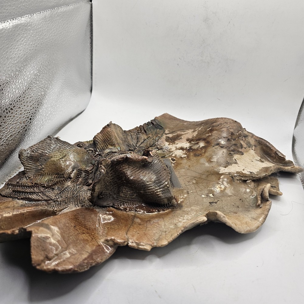 Add a unique touch to your living space with this studio art pottery sculpture. The 3D sculpted face design is perfect for those who appreciate weird and surreal art styles. Made from high-quality clay, this light sculpture is a great addition to any art collection. The sculpture features intricate details and unique production techniques, making it a one-of-a-kind piece. Its minimalist design allows it to fit seamlessly into any decor. This pottery sculpture is a great find for collectors and art enthusiasts alike. See photos for imperfections sold as is