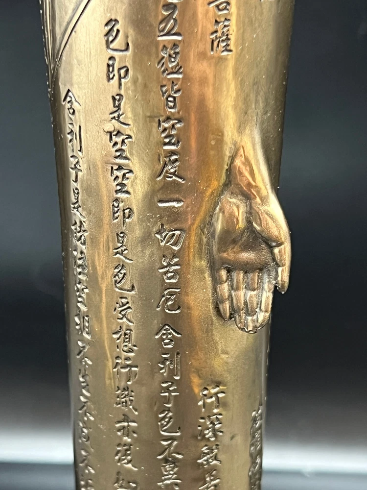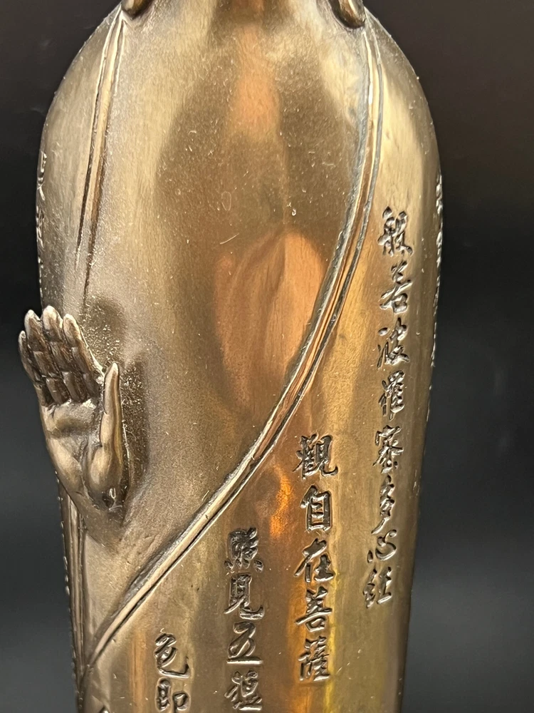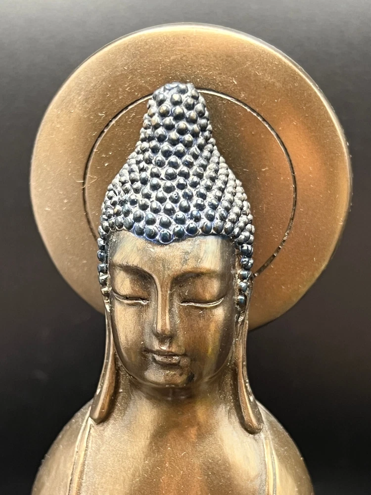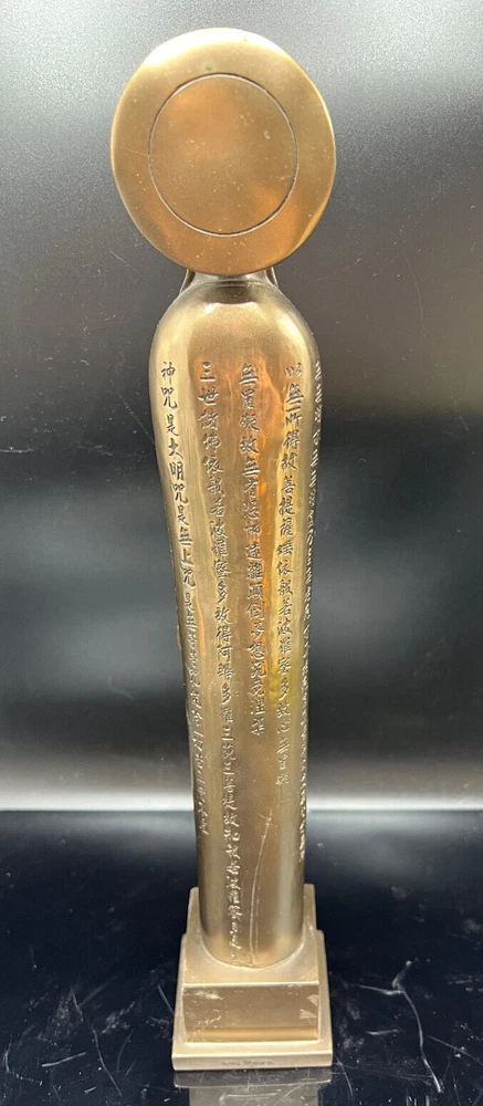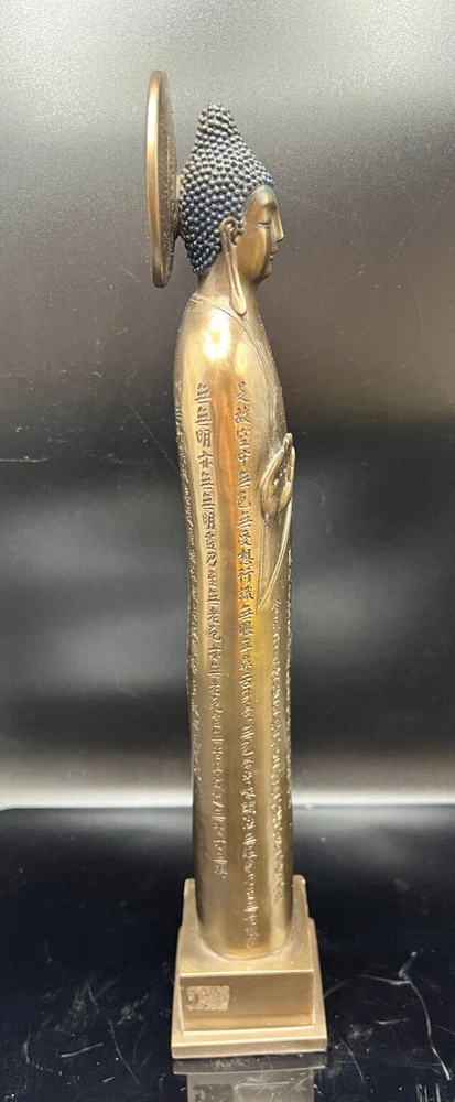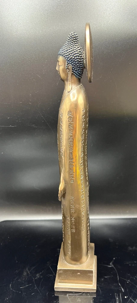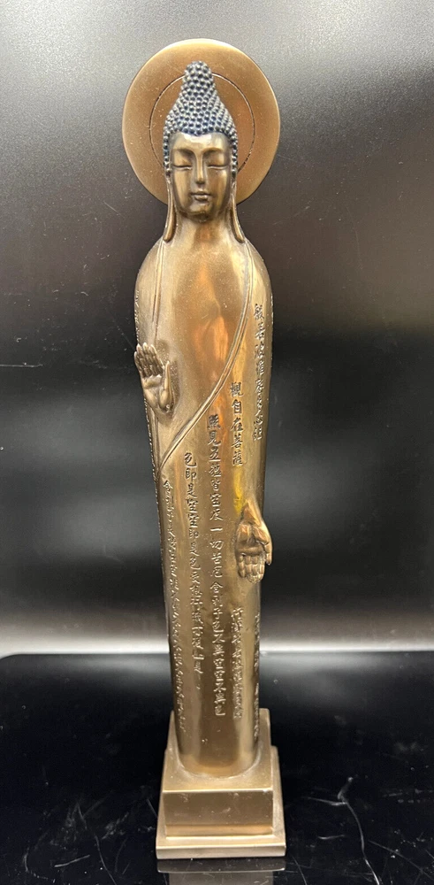 This stunning Studio Collection by Veronese Slim Buddha Statue is a must-have for any collector or practitioner of Buddhism. Crafted with exquisite attention to detail, this statue features a heart sutra engraving that adds a profound touch to its already impressive design. The statue is perfect for display in any space, whether it be a home, office, or spiritual sanctuary. Its slim design allows for easy placement in any direction, and its religious significance makes it a unique and meaningful addition to any collection. This piece comes from my dear friends collection and has been displayed for many years . I will pack with great care and get it to you ASAP Thanks for looking !