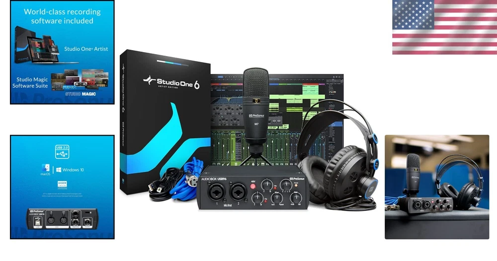 Studio Quality Home Recording Bundle - AudioBox USB 96, M7 Mic & HD7 Headphones ‹ › ‹ › ‹ › ‹ › ‹ › ‹ › ‹ › ‹ › ‹ › ‹ › ‹ › Studio Quality Home Recording Bundle This comprehensive package equips you with everything you need to record and produce professional-quality audio from the comfort of your home, all in a single, elegant purchase. Package Includes: AudioBox USB 96: Rugged audio/MIDI interface designed for capturing vocals and instruments with studio-quality fidelity. M7 Microphone: A versatile large-diaphragm condenser microphone, perfect for vocals, acoustic instruments, podcasts, and more. HD7 Headphones: Comfortable headphones designed to mix, monitor, and produce audio without disturbing your surroundings. Professional Software: Enjoy over $1000 USD worth of audio software, including Studio One Artist and the Studio Magic Suite, to elevate your productions. Complete Setup: Includes all necessary cables plus a desktop mic stand, allowing you to start recording immediately. Why Choose This Bundle? Effortlessly capture your creativity with the best-selling AudioBox USB 96, known for its stellar sound quality. The versatile M7 microphone is engineered to excel in various recording scenarios, ensuring your artistry is perfectly articulated. HD7 headphones offer impressive sound isolation, allowing you to work late into the night without disturbing others. Access a rich suite of professional-grade software tools to optimize your production workflow. Seamlessly setup right out of the box, eliminating the need for any additional accessory purchases. Capture and create seamlessly! The AudioBox 96 Studio is designed to empower you in your creative endeavors, whether you're producing podcasts, recording music, or creating soundtracks. Its user-friendly design ensures that you can make the most of your creative ideas, leaving you free to focus on what truly matters: the art of expression. Transform your home into a professional recording studio today with the Studio Quality Home Recording Bundle—your pathway to exceptional audio production! Shipping Free & Fast Shipping - We offer free shipping to most of the USA with a normal delivery time of 3-7 days. However, due to the current situation, additional delivery time (up to 3 weeks) may be required for some items. Alternative Carriers - We may use alternative carriers (e.g. USPS, FedEx, UPS, etc.) to ensure your package arrives safely and on time. Due to the use of multiple carriers, we are unable to provide a tracking number automatically. Handling Time - Orders are processed and shipped within 1-2 business days of receiving cleared payment. Shipping Restrictions - Shipping to Alaska, Hawaii, Puerto Rico, Guam, and other US territories may incur shipping charges or delivery restrictions. Please contact us before ordering, or your order can be refunded/cancelled. State Restrictions - There may be restrictions based on your state of purchase. For example, certain items may not be shipped to California due to state regulations. Contact for Tracking Updates - If you require tracking updates or have any concerns about the delivery of your order, please feel free to contact us, and we will be happy to assist you. Return 30-Day Hassle-Free Returns - We want you to be completely satisfied with your purchase. If you are not, you can return the item within 30 days of receiving it for a full refund or exchange. Easy Return Process - To start a return, simply contact us and we will provide you with a prepaid return shipping label and detailed instructions. Restocking Fee - There are no restocking fees for returns. However, the buyer is responsible for return shipping costs if the return is not due to a seller's error. Refund Processing Time - Refunds will be processed within 5 business days of receiving the returned item in its original condition. Payment We accept all major credit cards, PayPal, and Apple Pay for your convenience. Your payment information is secure and encrypted to ensure a safe and seamless transaction. Please complete your payment within 3 days of purchase to avoid any delays in shipping. Feedback Your feedback is extremely important to us. We strive to provide the best products and customer service possible. If you are satisfied with your purchase, please take a moment to leave us a positive review. If you have any concerns or issues with your order, please contact us before leaving negative feedback. We are committed to resolving any problems and ensuring your satisfaction. Contact Us If you have any questions or concerns, please feel free to reach out to our customer support team. You can contact us through the eBay messaging system. We are available Monday to Friday, 9:00 am to 5:00 pm EST, and we will do our best to respond to your inquiry within 24 hours. Thank you for supporting our small family business! UPC: Not Set Maximum SPL: 96 dB Unit Quantity: 1 Item Weight: 5 lb Connectivity: USB Features: Adjustable Stand,Plug and Play Compatible Model: PreSonus AudioBox 96 Brand: Unbranded Form Factor: Studio Bundle Transducer Type: Condenser Model: Not Set Diaphragm Size: Large Suitable For: Studio Recording MPN: Not Set Unit Type: lb Color: Black Polar Pattern: Not Set Country/Region of Manufacture: Not Set Manufacturer Warranty: Not Set Mount Type: Desktop Mic Stand Compatible Brand: Not Set