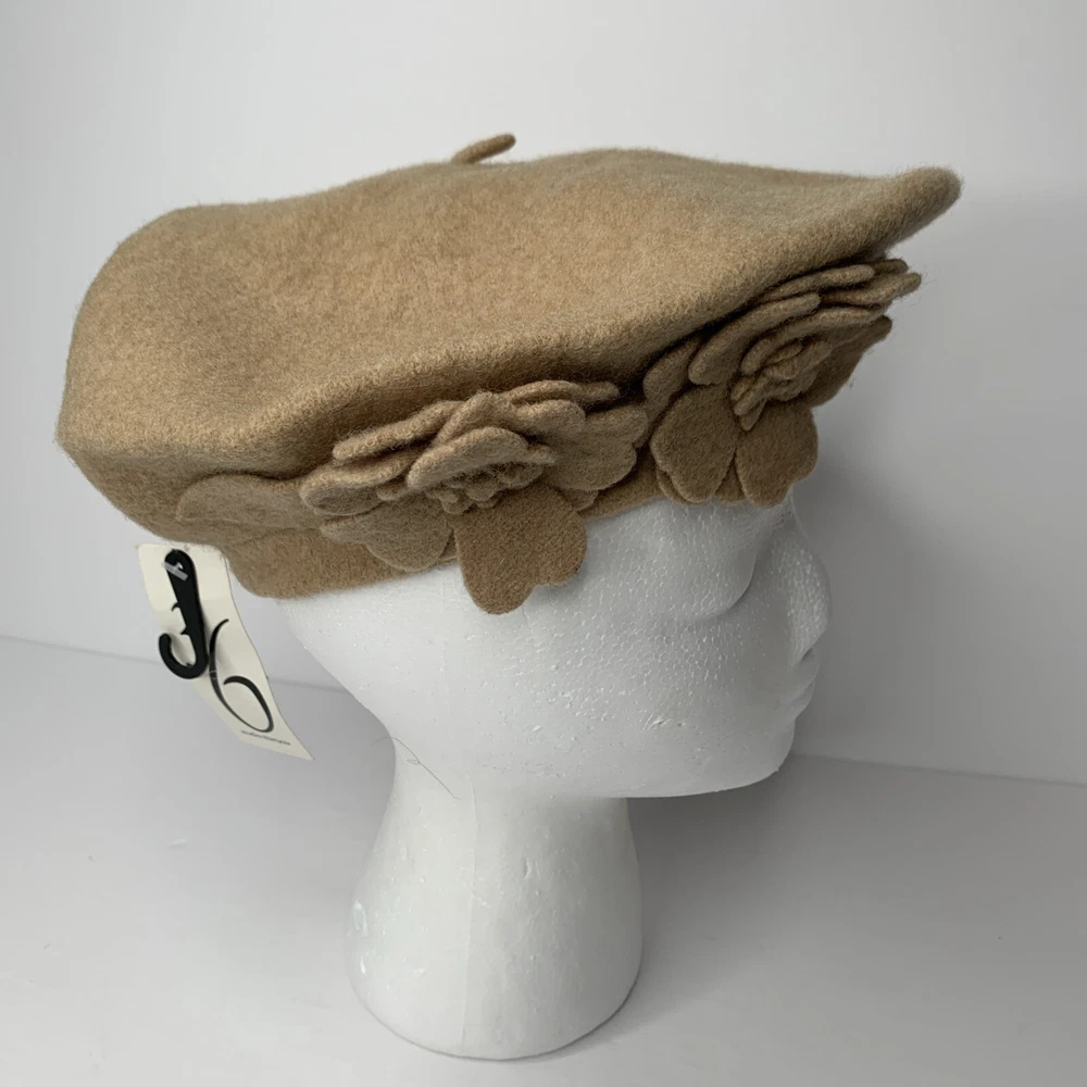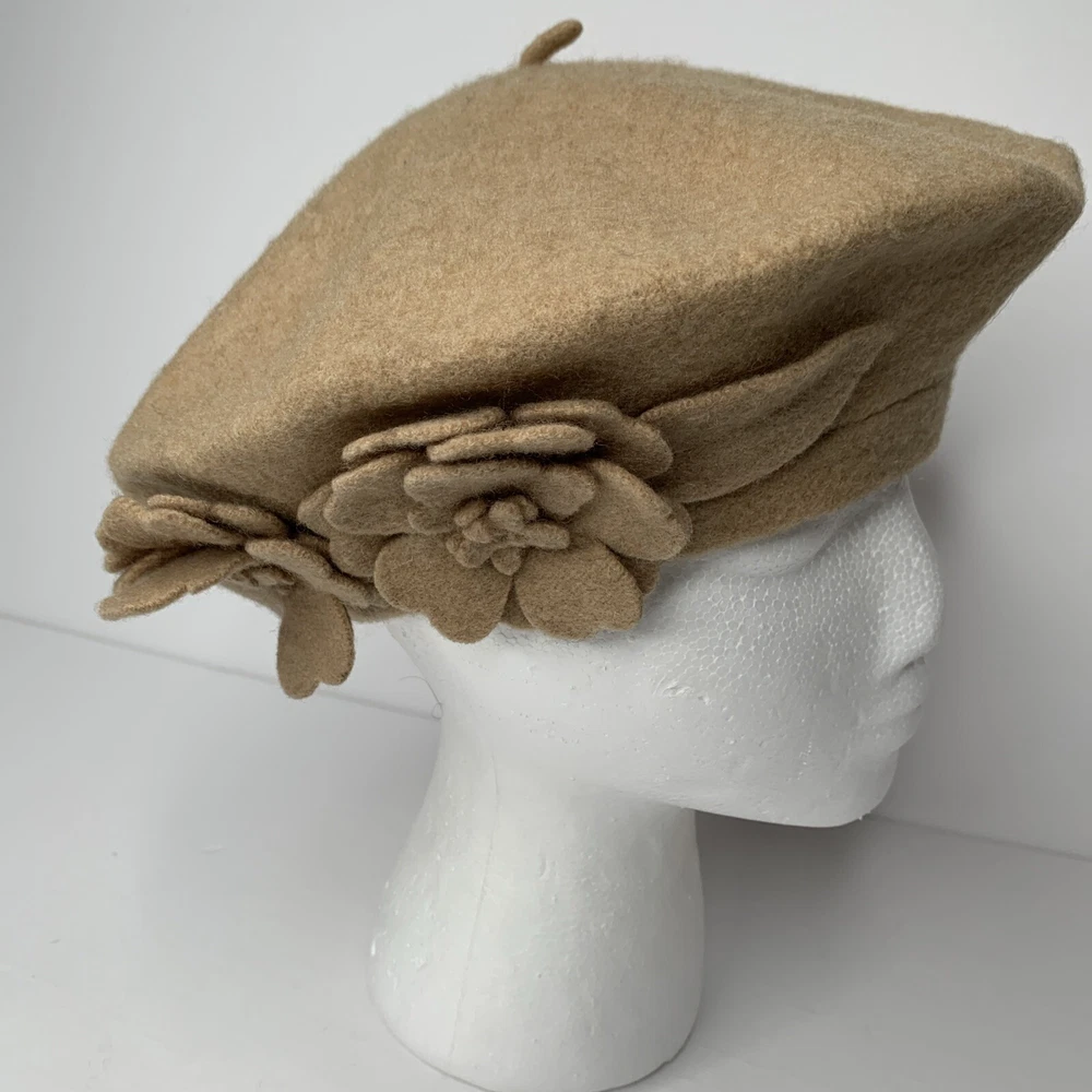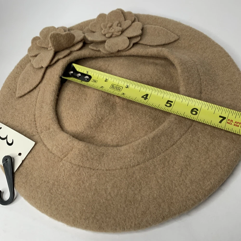 Studio Thirty Six Camel Flower Beret 100% Wool One Size (XS)