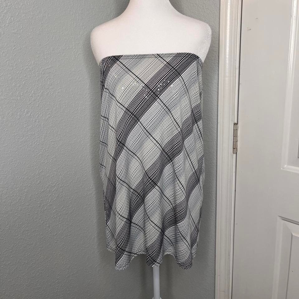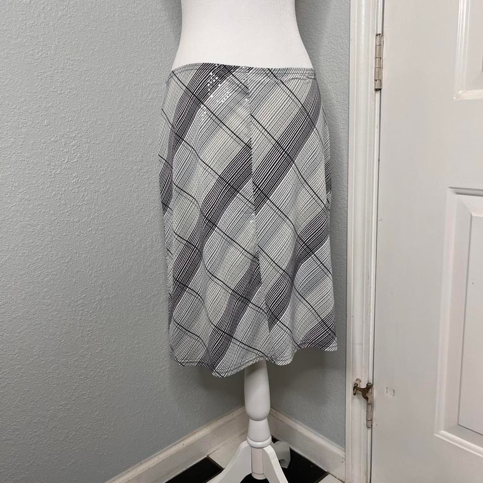 Blue and white Studio Y vintage 90s y2k plaid sequined midi skirt with elastic waistband that could also be worn as a strapless mini dress! #plaid #midi Sku 2369