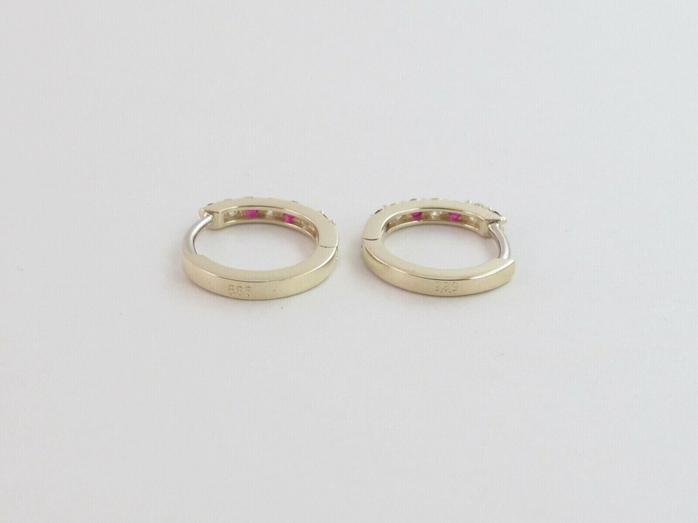 Era: Undated Type: Earrings Vintage: No Cut Grade: Excellent Country of Origin: United States Style: Hoop, Huggie Color: Yellow Material: Stone, Metal, Gemstone Main Stone Treatment: Not Enhanced Seller Notes: ““Freshly made on order with quality and buyer satisfaction. No old stocks.”” Base Metal: Yellow Gold Plated MPN: NA Metal: Sterling Silver Ear Area: Lobe Customized: Yes Number of Gemstones: Multi Main Stone: Simulated Ruby Setting Style: Prong Signed: No UPC: Does Not Apply Seller Warranty: Yes Handmade: Yes gtin13: Does Not Apply Closure: Push Back Main Stone Color: Pink Shape: Round Personalize: No Secondary Stone: Simulated Diamond Brand: sp_jewels Features: Engraved Main Stone Shape: Round Occasion: Anniversary, Birthday, Christening, Christmas, Confirmation/Communion, Engagement, Graduation, Mother's Day, Valentine's Day, Wedding Main Stone Creation: Simulated Wholesale: Yes Antique: No Theme: Beauty Country/Region of Manufacture: India Metal Purity: 925
