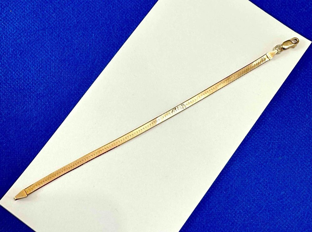 Very attractive 14k yellow gold signed aCa (Creazioni) Italy Herringbone Bracelet. It has one of the issues common with herringbone jewelry, a very slight kink or wrinkle. It only has one. It is still a beautiful jewelry piece and quite wearable. It measures total length 7", is 4mm wide and weighs 4.25 grams. A great bargain and beautiful addition to any jewelry box! Please examine the attached photos they describe this listing better than any words. Click on any photo to 'super size' them. We'll be happy to answer any questions. We will wrap securely and mail it in a shipping box. 14k Signed aCa (Creazioni) Italy Herringbone Bracelet 7" Long 4.25 Gram (Kink) 14k Signed aCa (Creazioni) Italy Herringbone Bracelet 7" Long 4.25 Gram (Kink) Click images to enlarge Description Very attractive 14k yellow gold signed aCa (Creazioni) Italy Herringbone Bracelet. It has one of the issues common with herringbone jewelry, a very slight kink or wrinkle. It only has one. It is still a beautiful jewelry piece and quite wearable. It measures total length 7", is 4mm wide and weighs 4.25 grams. A great bargain and beautiful addition to any jewelry box! Please examine the attached photos they describe this listing better than any words. C lick on any photo to 'super size' them. We'll be happy to answer any questions. We will wrap securely and mail it in a shipping box. RC Red 2023 Payment eBayPay accepts many forms of payment, including PayPal. COMBINED SHIPPING - please place items in eBay's shopping cart. When you are done shopping in our store, click on the cart and Request an Invoice. For jewelry items, you pay shipping on one item, plus 25¢ shipping for each additional item. Payment is expected within 4 days of the sale. If you need additional time to pay, we will be happy to work with you IF YOU CONTACT US. If you do not contact us, the item will be reported to eBay as unpaid. Sales Tax: if your state has a law requiring sales tax be paid on items purchased on the internet, eBay will add that tax to your total purchase price. *** International Buyers ~ Please Note: Import duties, taxes and charges are not included in the item price or shipping charges. These charges are the buyer's responsibility. Please check with your country's customs office to determine what these additional costs will be prior to bidding/buying. These charges are normally collected by the delivering freight (shipping) company or when you pick the item up - do not confuse them for additional shipping charges. We do not mark merchandise values below value or mark items as "gifts" and will not send items prohibited by your country's import laws. US and International government regulations prohibit such behavior. Please DO NOT ASK us to lie. Shipping SHIPPING TIME: Jewelry is shipped next business day. Larger items within 3 business days. If you need an item sooner, please let us know and we will expedite shipping. SHIPPING CHARGE: When we use eBay's Calculated Shipping, we determine the box size and weight and add shipping insurance, then eBay calculates the cost to ship. Smaller items are shipped at a flat rate, shown on the listing. We try to price our items below value to allow for shipping charges. Our guarantee to you: We will package your item to shipping industry standards so it will have the best possible chance of reaching you safely. As you can see from our feedback, we put our customer's satisfaction first . We work hard to gain a 5-star rating. If we have failed to meet this goal, PLEASE contact us and give us the opportunity to add you to our "Totally Satisfied" customer list. Terms of Sale Please note that our photos are part of our description and that vintage or pre-owned items will usually have some signs of wear. Please ask if you have questions about any item. We will accept returns for the following reasons: On items listed as ACCEPT RETURNS - Changed mind, Doesn't fit, Don't like it, Color is not what I expected On ALL items under "eBay guarantee" policy - Wrong item sent, Not as described, Arrived broken, etc. Please contact us within 4 days of receipt of the item if you intend to return it. Items being returned must be mailed back no later than 30 days from date of sale. Item must be in ORIGINAL CONDITION with no alterations or damage received while in your possession. Securely wrap items along with any display or presentation boxes, using bubble wrap, and place them in the original box or a sturdy substitute for mailing. If the listing shows we pay return shipping, eBay will ask us to send you a return mailing label and will notify you where to find it for printing. If the listing shows you pay for return shipping, we provide you with our mailing address through eBay. All items are under eBay guarantee and if they are not as described or we mailed the wrong item, we pay the shipping both ways. (Please note that buyers are responsible for reading descriptions and looking at photos. If the item is not as expected because you did not look at the entire listing, it may be returned, but you pay the postage.) Refunds will be made through eBay's Payment system, to the account, card or service that you used in the purchase. Please contact us if you feel an item was not as advertised so we can turn a negative situation into a positive solution. WE DO NOT ACCEPT RETURNS ON CLOTHING or Soft Goods . About Us This husband and wife team have been selling on eBay since 2006. We live in the Ohio Valley where many of the best glass houses of the 1900's were located and sold vintage elegant glassware for many years. We currently offer vintage and other nice jewelry, along with collectibles and assorted other items. We find many treasures at local estate auctions and pass them on to you, our buyer. We are continually learning about vintage jewelry, glass, china and other collectible items and we appreciate your comments and questions. Contact Us Please contact us through E-Bay's link "Ask seller a question". If you have a que