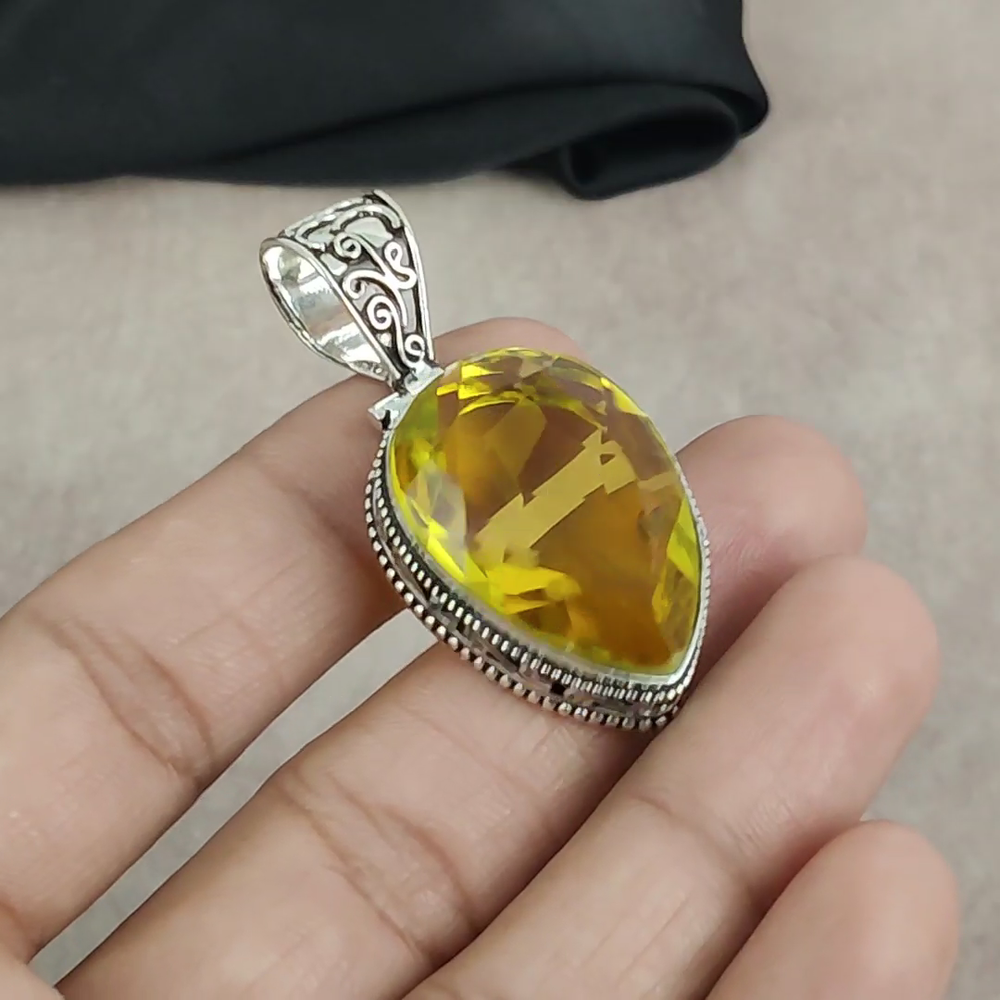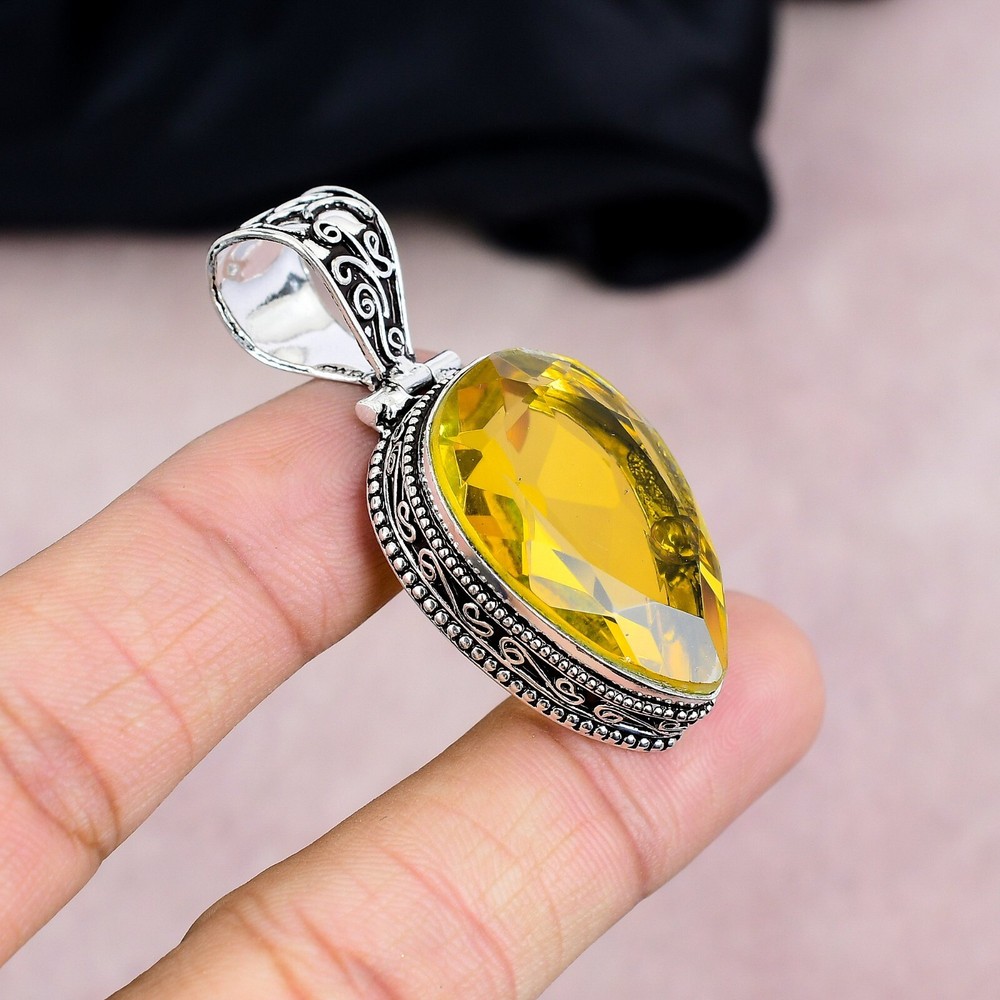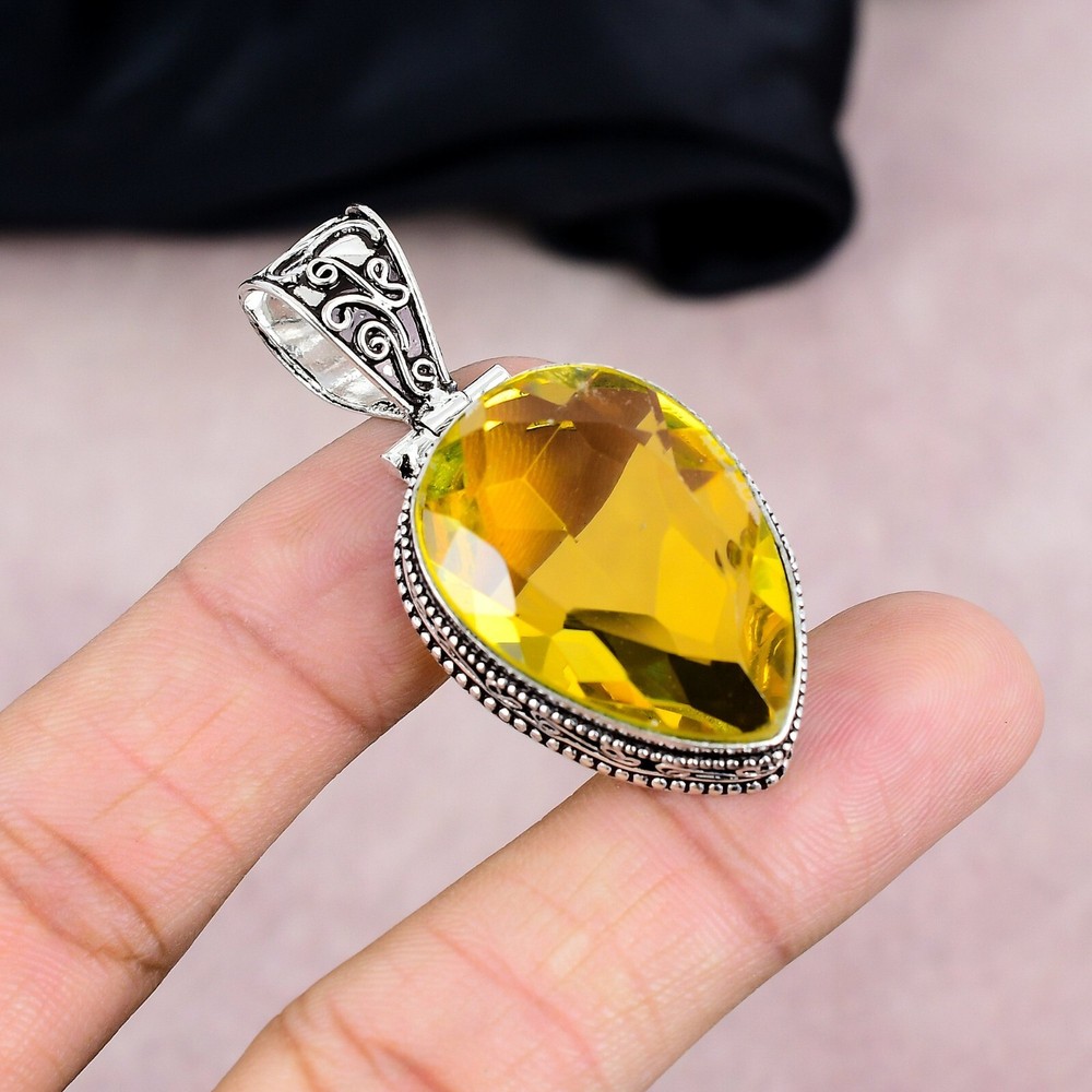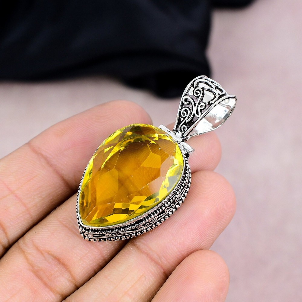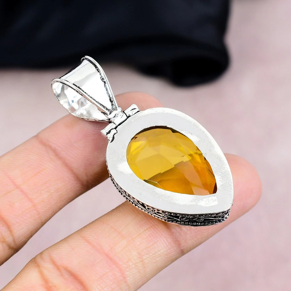 HomeStunning 925 Sterling Silver Citrine Gemstone Handmade Pendant Gift