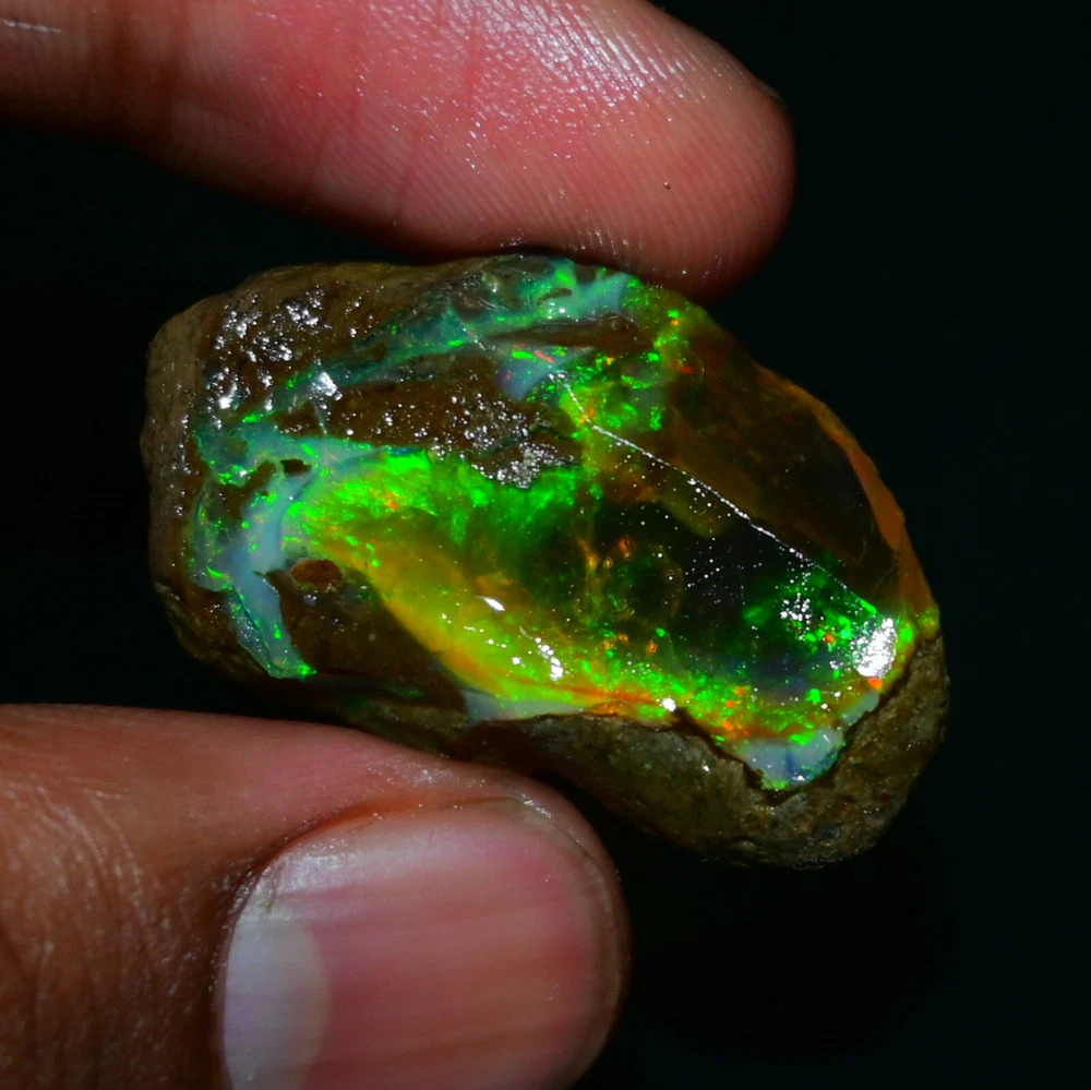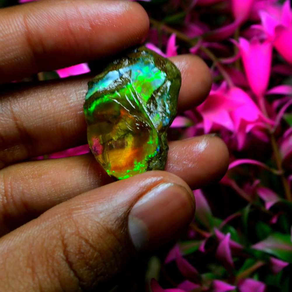 Mountain Gems USA Genuine Gemstones, Guaranteed Authenticity Discover the Beauty of Ethiopian Opal Specimen Rough Experience the raw, unpolished beauty of Ethiopian opal, a gemstone renowned for its vibrant colors and unique play of light. This rough opal specimen offers a direct connection to the Earth's natural wonders. Key Features: * Type: Ethiopia Opal Specimen Rough * Weight: 25.50 Cts * Size: 31X19 MM * Origin: Ethiopia, a renowned source of high-quality opal * Condition: Rough, unpolished specimen * Color: Multi Color with Fire Flashes About Ethiopian Opal: Ethiopian opal is prized for its vibrant colors, including blues, greens, yellows, oranges, and reds. It often exhibits a stunning play of light known as "opalescence." This phenomenon is caused by the diffraction of light within the stone's microscopic silica spheres. Note: * The colors and patterns in this specimen may vary slightly due to the natural variation of opal. * This is a rough specimen and may require further cutting or polishing to reveal its full potential. Shipping: * Free International Standard Shipping: Enjoy free standard shipping across the Globe. * International Shipping: Free Returns: * Free 30-Day Returns: Return the item within 30 days for a full refund, no questions asked. Payment: * Accepted Payment Methods: PayPal, credit cards, debit cards, Venmo, etc Additional Information: * Certificate of Authenticity: 20$ Extra for Cetificates * Custom Orders: We offer custom cutting or polishing services, drilling and whatever you want. By purchasing this Ethiopian opal specimen rough, you're acquiring a unique piece of nature's artistry.